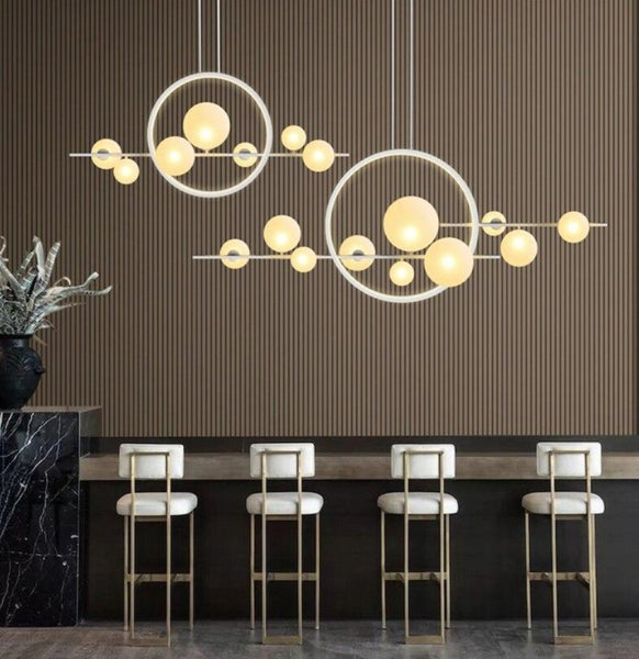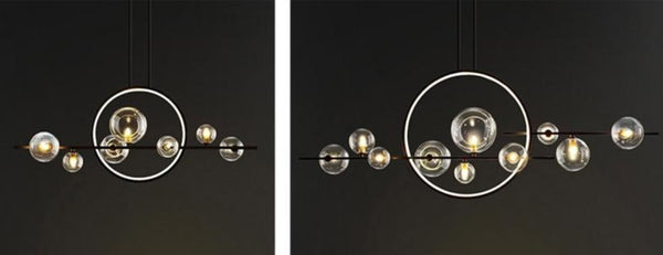 Moderni riippuva lasipallo-LED-valaistus. Pohjoismaiseen tyyliin sopiva kattokruunu, joka sopii yhtä hyvin olohuoneeseen kuin ruokapöydän päälle.