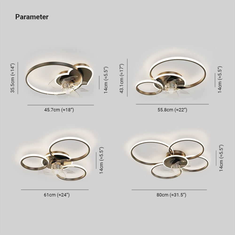 Arisha kattotuuletin valolla, 2/3/4/5 rengasta, 2 väriä, L 18"/22"/24"/31,5"