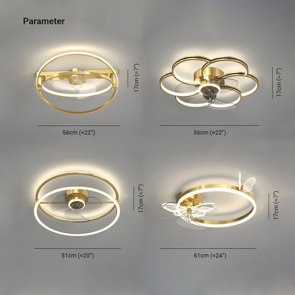 Arisha kattotuuletin valolla, 2 väriä / 4 tyyliä, DIA 20"/22"/24"