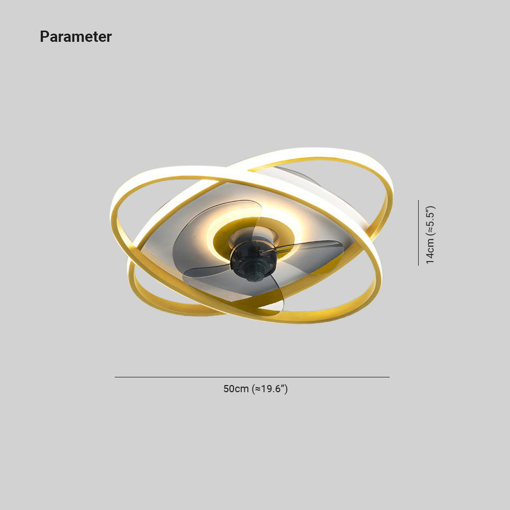 Arisha kaksirengas kattotuuletin valolla, 5 väriä, L 19,6"