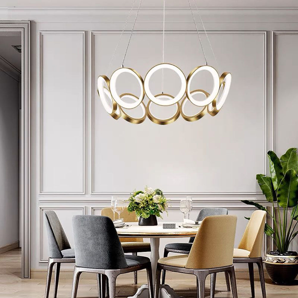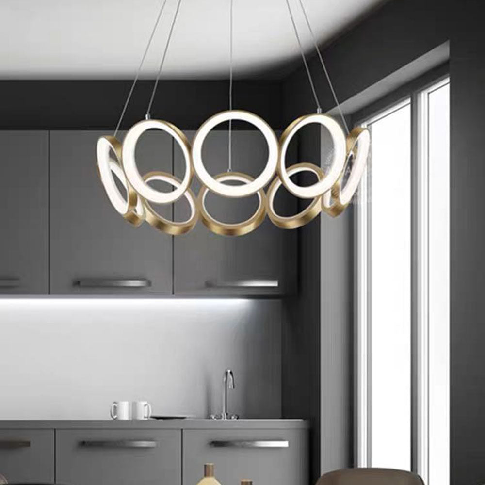 - Riippuvalaisimemme ainutlaatuinen muotoilu. Yhdistetyistä rengasvaloista koostuva se muodostaa lumoavan pyöreän kokoonpanon, joka kiinnittää silmän välittömästi. Näiden renkaiden saumaton integrointi luo lumoavan visuaalisen spektaakkelin, joten tämä riippuvalaisin ei ole vain valonlähde, vaan myös taideteos. Korosta tilaasi valaisimella, joka yhdistää muodon ja toiminnan lumoavalla tavalla.