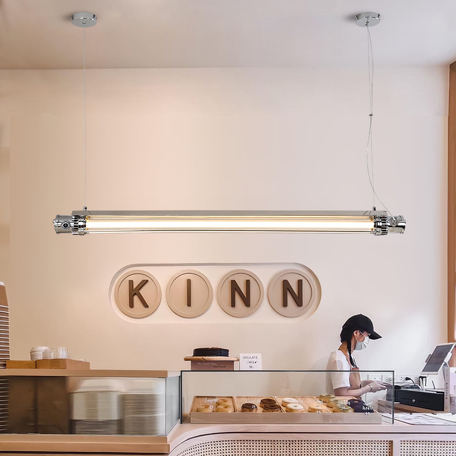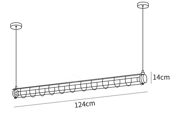 Koko: P 124 cm x L 20 cm x K 14 cm / P 48,8″ x L 7,9″ x K 5,5 " (teho ~ 36W) Tiedot Materiaali: rauta, metalli, lasi Valonlähde: Integroitu LED Kelvin-alue: Lämmin valo (3000K), neutraali valo (4500K), viileä valo (6000K). Teho: ~18W Jännite: AC 110-240V Asennus: kattoon Ympäristö: Sisätilat Paino: 10kg / 22lbs IP: IP20 Akku: Ei Ajuri vaaditaan: Kyllä Viimeistelyt: Musta, Hopea Prosessi: kiillotus, muotti, leikkaus Ohjaustapa: painikekytkin (ei himmennettävä) Toimitamme 150 cm / 59" johdot. Voidaan pidentää pyynnöstä.