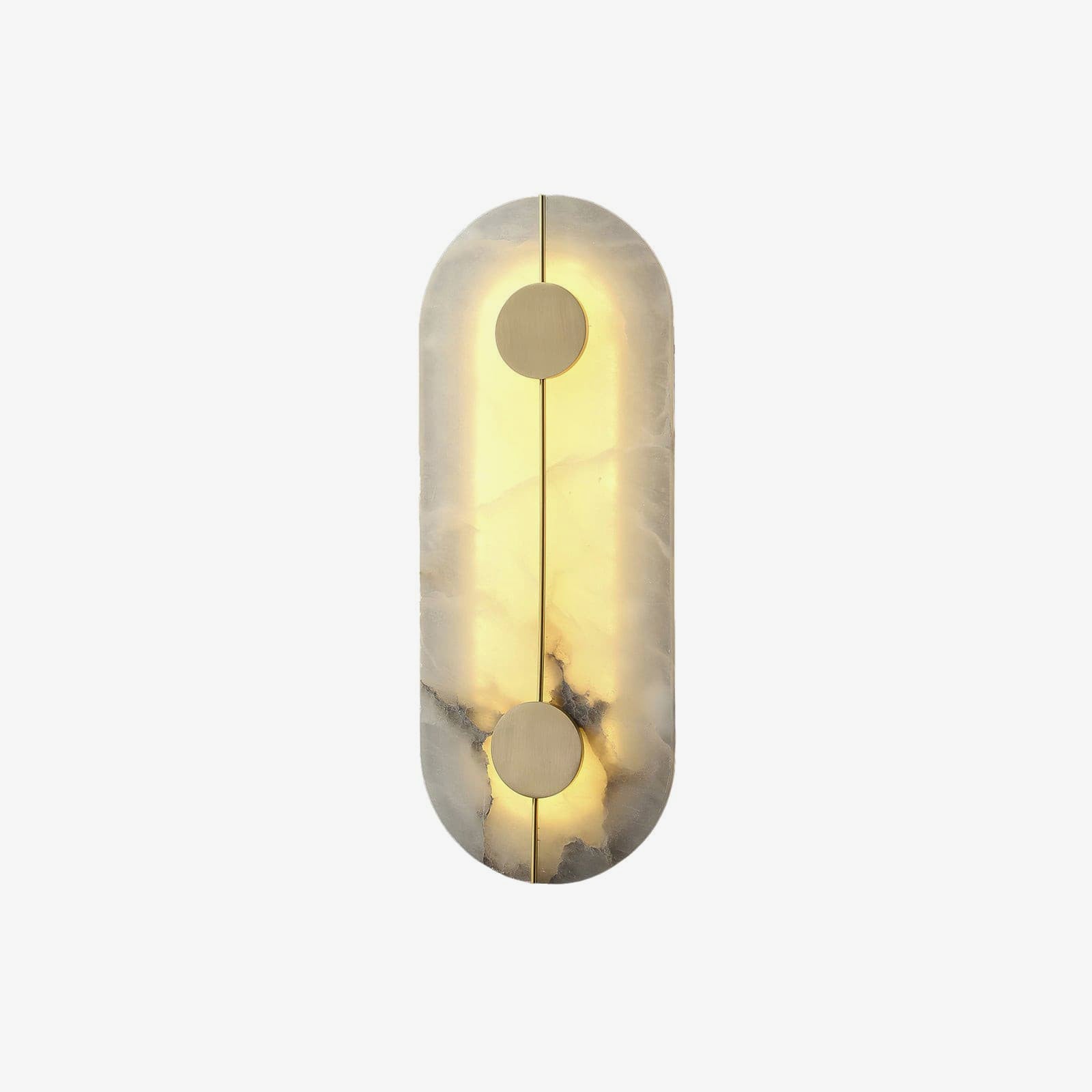 Tämän taiteellisen marmoriseinävalaisimen muoto on hyvin yksinkertainen ja täynnä retroa. Sen varjostimen viimeistely on tehty dolomiitista ja kuparista. Kun valo loistaa sisältä, se tarjoaa ainutlaatuisen ja hiljaisen ympäristön. Se voidaan asentaa käytävälle, yöpöydälle ja työpöytään.