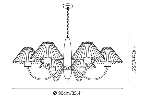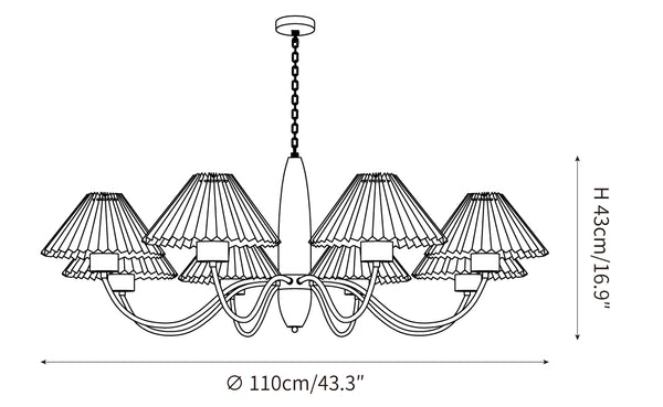 8 päätä Koko: Halkaisija 110 cm x K 43 cm / ∅ 43,3″ x K 16,9″