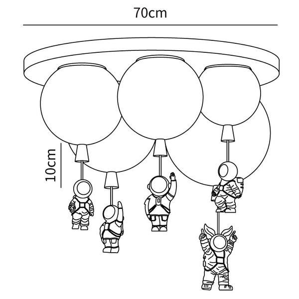 Lisää täydellinen kattovalaisin makuuhuoneeseesi, olohuoneeseesi tai lapsesi makuuhuoneeseen. Tässä helposti asennettavassa valossa on astronautti ja ilmapallo. Valittavana on seitsemän upeaa väriä ja kaksi tyyliä. Voit luoda hauskan esittelyn muilla tilavaikutteisilla lisävarusteilla, jotka herättävät huoneen eloon.