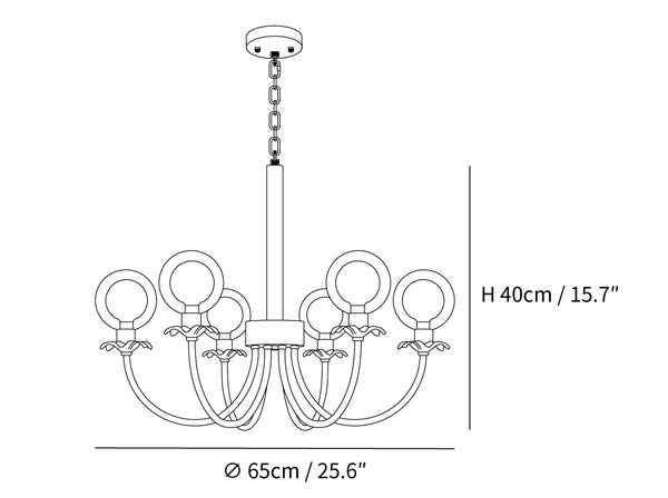 6 päätä Koko: Halkaisija 65 cm x K 40 cm / ∅ 25,6″ x K 15,7″