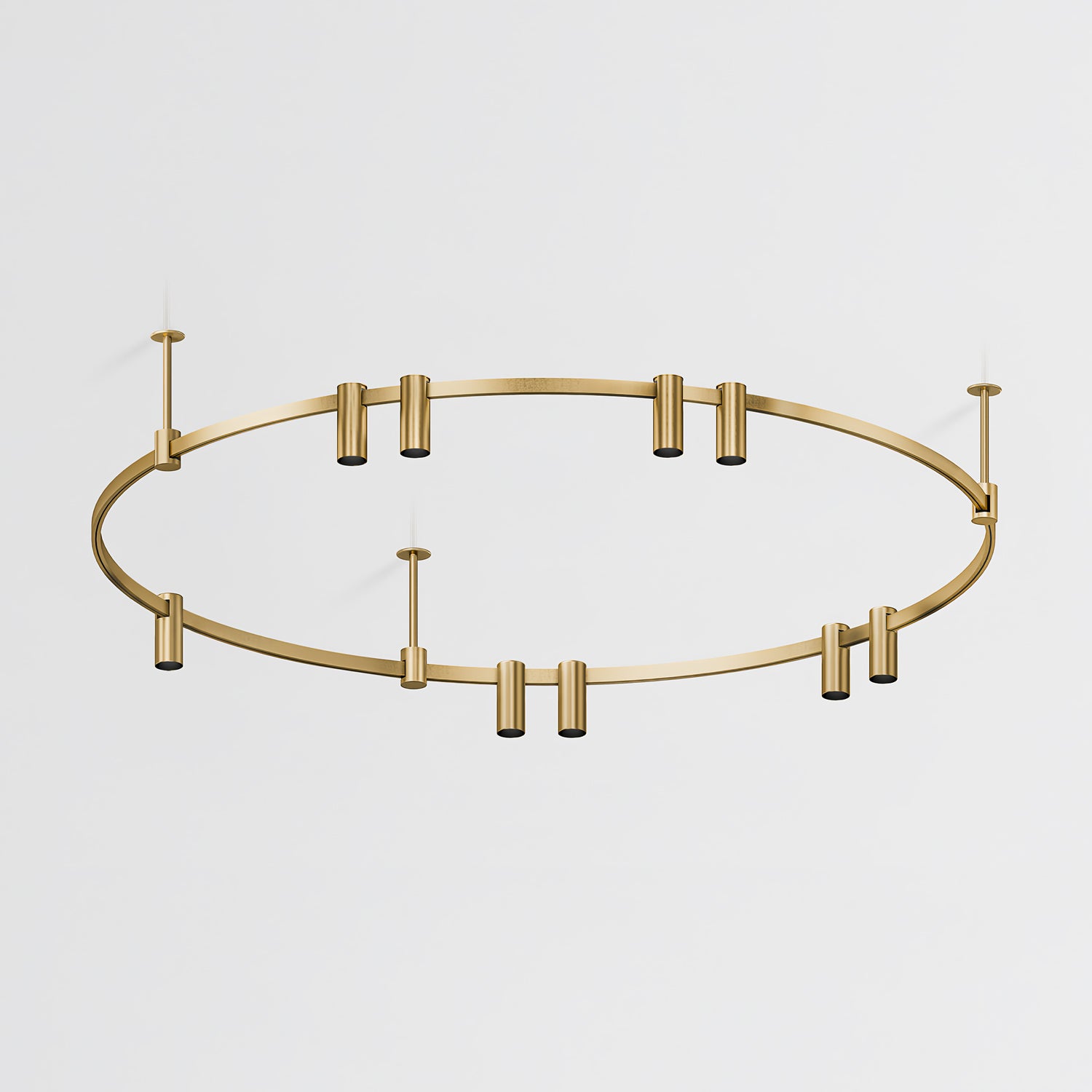 Koe eleganssia ja monipuolisuutta Auroom Round -kattokruunulla. Sen messinkirakenne takaa kompaktin koon, kun taas valaistusjärjestelmä mahdollistaa valaisinten lukumäärän ja sijainnin helpon muuttamisen. Mekaanisilla tai magneettisilla liittimillä voit olla varma, että valaisimet pysyvät tukevasti kiinnitettyinä kiskoon.