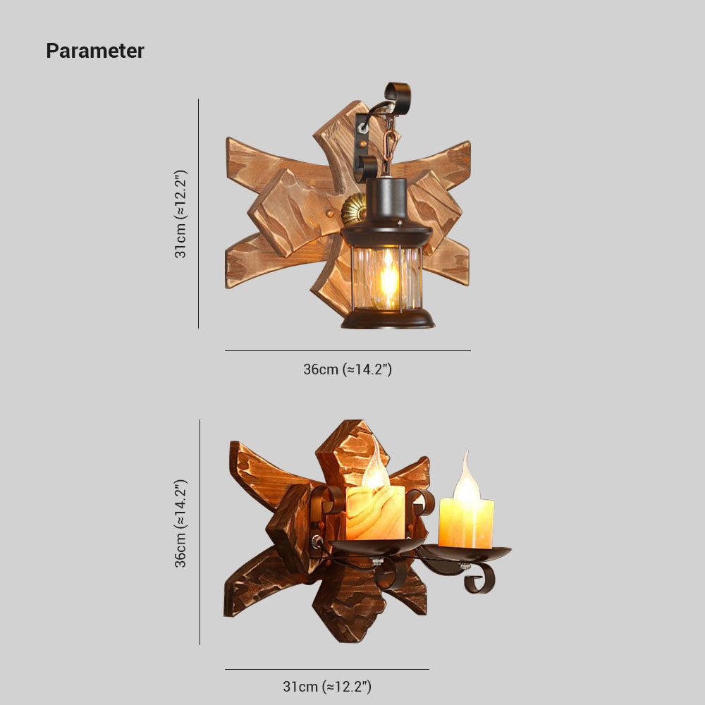 Austin Vintage kynttilä & lyhty LED-seinävalaisin, puu/metalli, kulta, makuuhuone