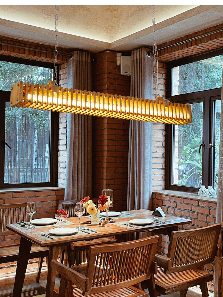 Austin suorakulmainen LED-riippuvalaisin, puu ja metalli, 47,5"