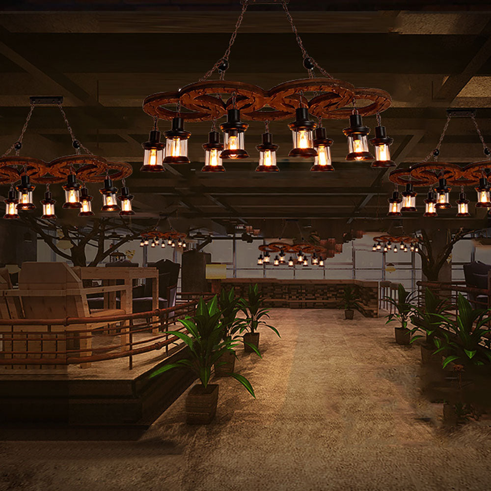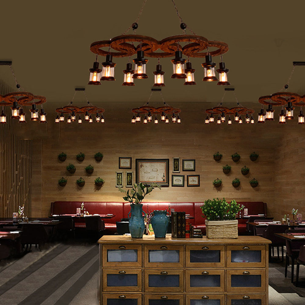 Austin Vintage 5 rengas metalli/puinen riippuvalaisin, pähkinä
