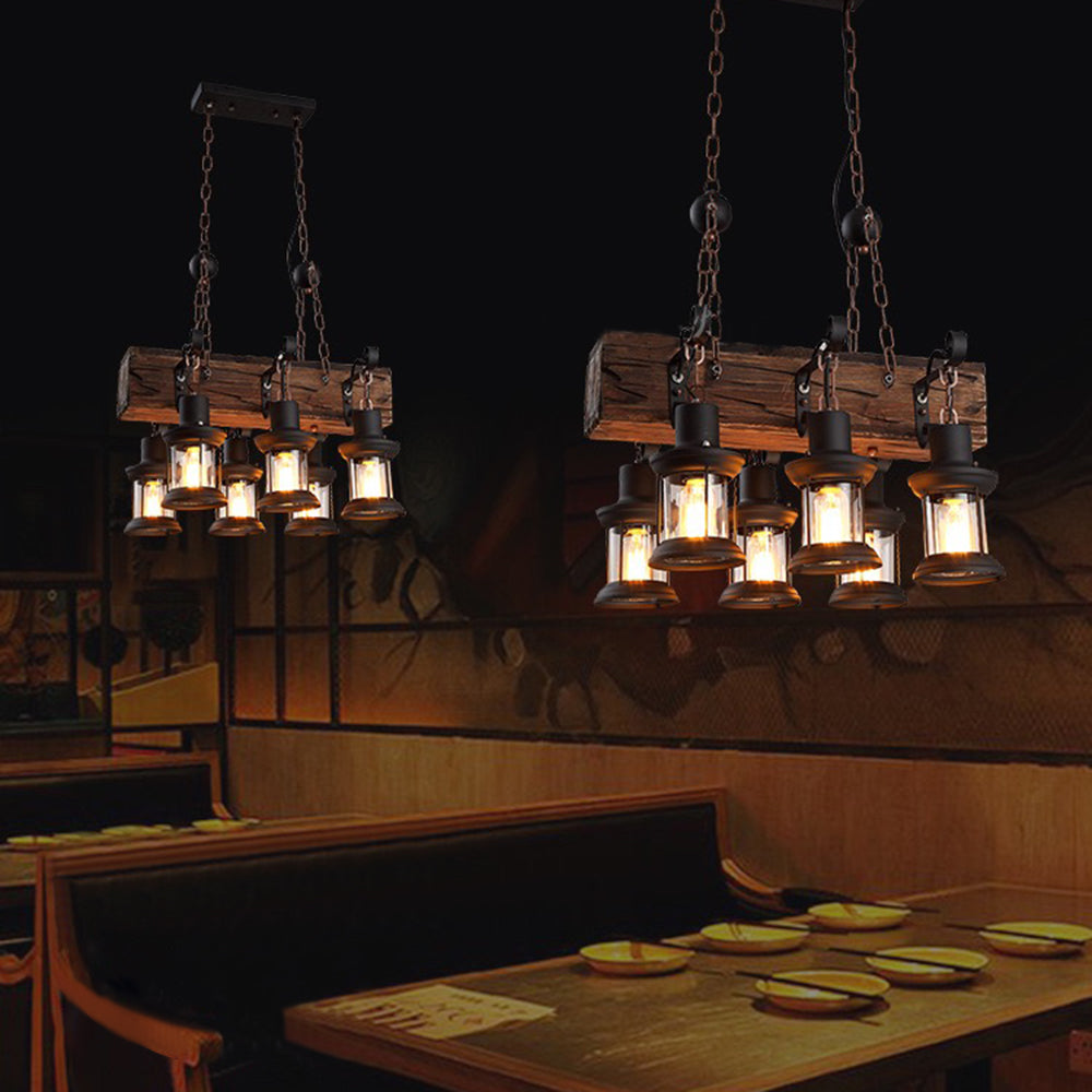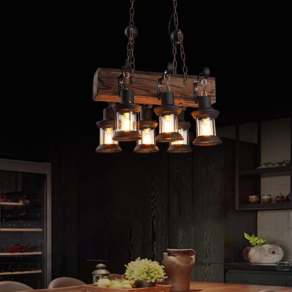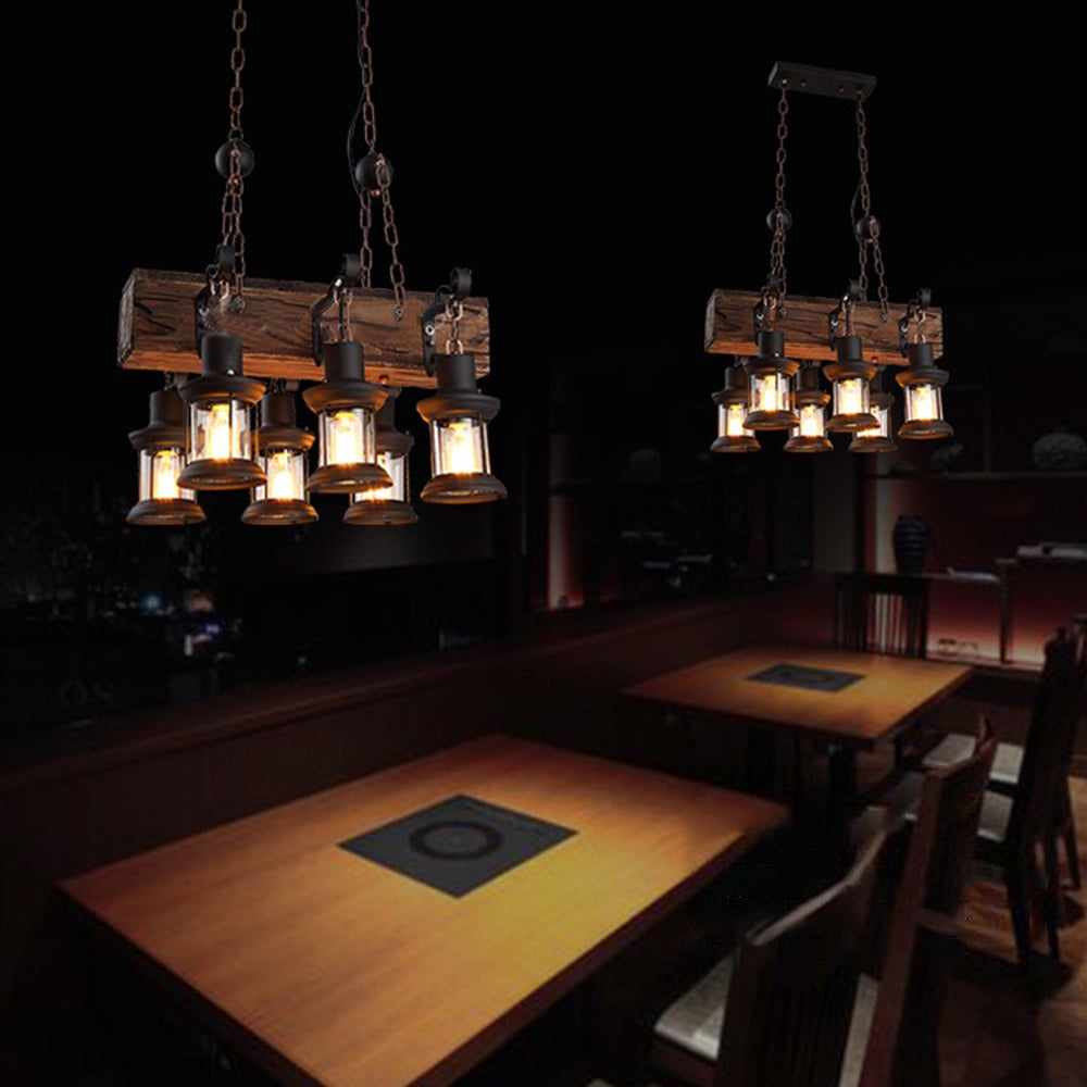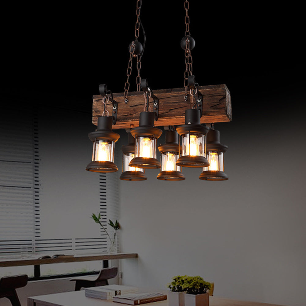 Austin Retro suorakaiteen muotoinen metalli/puinen lyhtyriippuvalaisin