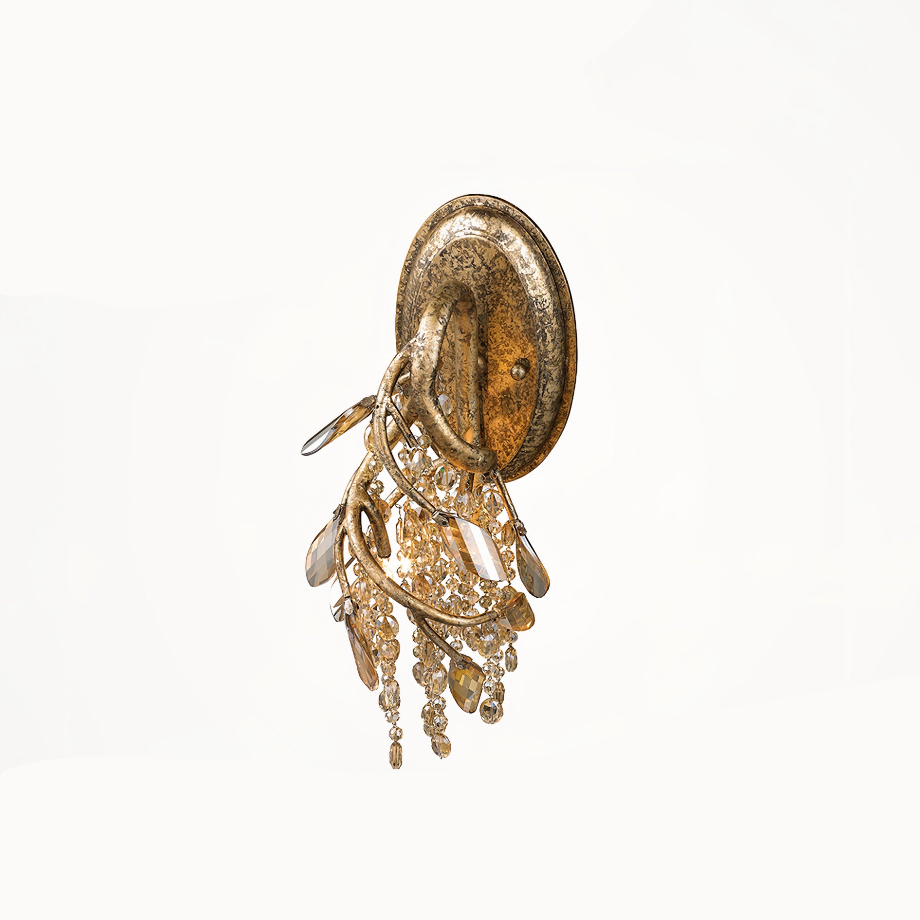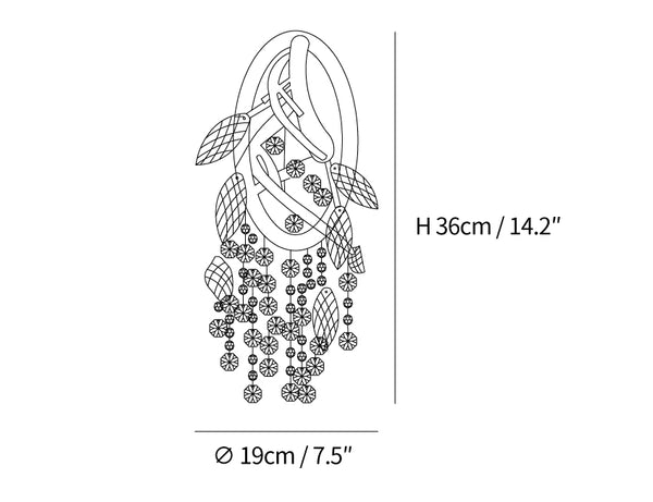 Syksyn hämärän seinävalaisin kunnioittaa luontoa kimaltelevilla lasihelmeillä, jotka jäljittelevät metsän katoksen kastepisaroita. Salaperäinen kultainen viimeistely varmistaa, että tämä moderni ihme sopii mihin tahansa nykyaikaiseen ympäristöön. Sen kynttelikköpolttimot tarjoavat sisäisen valonlähteen, joka kimaltelee sen monilla kiiltoisilla pinnoilla ja sytyttää uteliaisuuden ja keskustelun. Tämä haaroittunut kaluste luo katseenvangitsijan keskipisteen ja sopii täydellisesti olohuone- ja ruokailutilojen sekä aulojen korostamiseen.