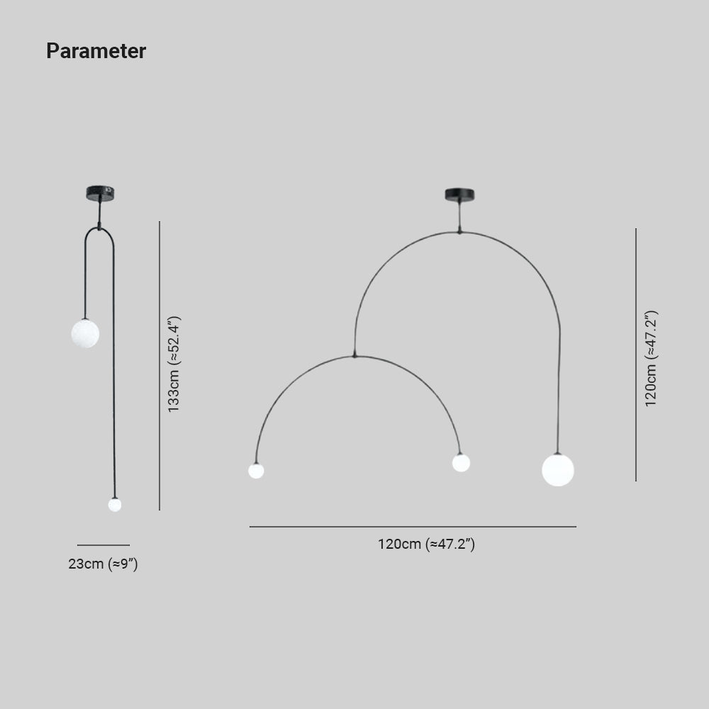 Riippuvalaisin on saatavana kahdessa muodossa, joista toisessa on kaksi yksinkertaista linjaa, jotka muodostavat kaksi kaaria, ja toisessa vain yksi kaari, mutta epäsymmetrinen vasen ja oikea pää. Kehyksen päissä ovat pyöreät sävyt, geometristen linjojen yleinen taiteellinen kauneus.