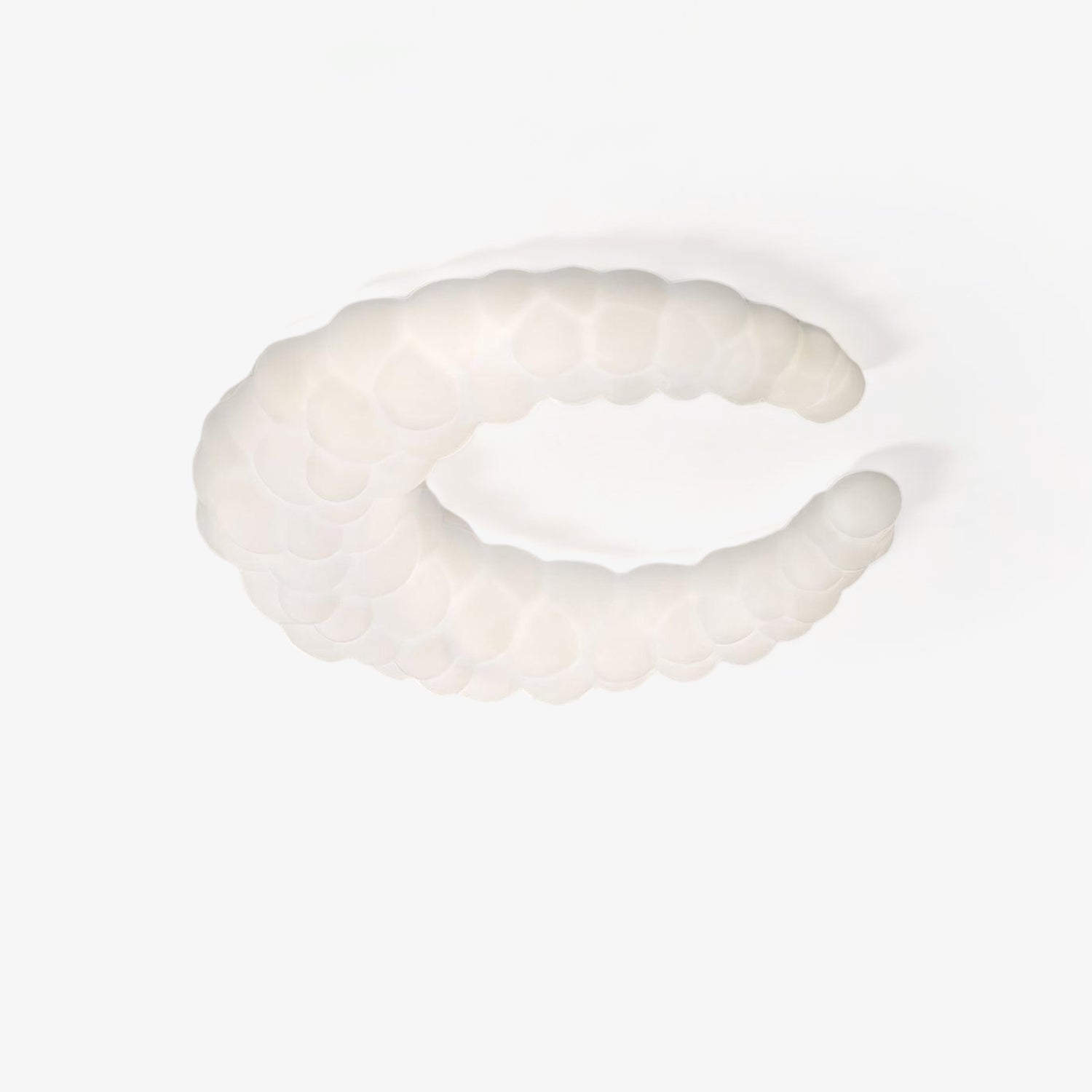 Nykyaikainen valkoinen kattovalaisin sopii mihin tahansa sisustustyyliin. Kuun muotoinen varjostin muistuttaa ilmassa olevaa auraa. Lisäksi valaisin on halon muotoinen rengas sekä runkoon sisäänrakennetut LED-lamput, jotka ovat täynnä sentimentaalista rakkautta.