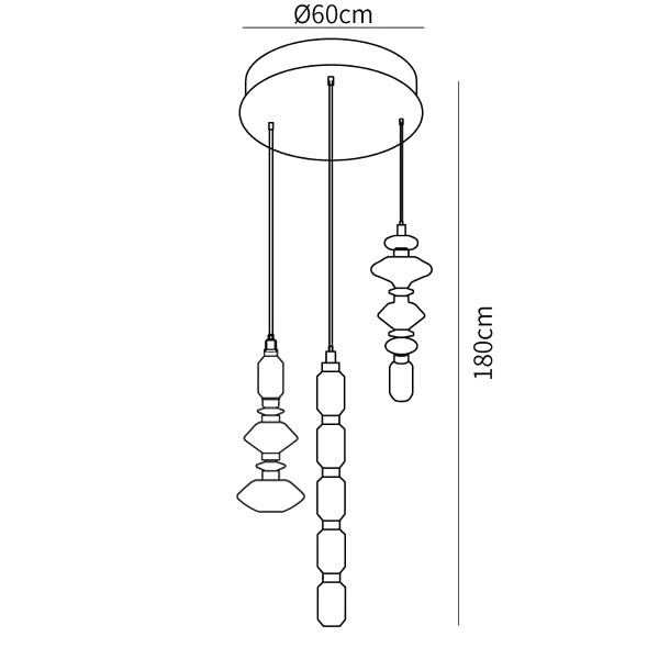 3 päätä Koko: Halkaisija 60 cm x K 180 cm / ∅ 23,6" x K 70,9"