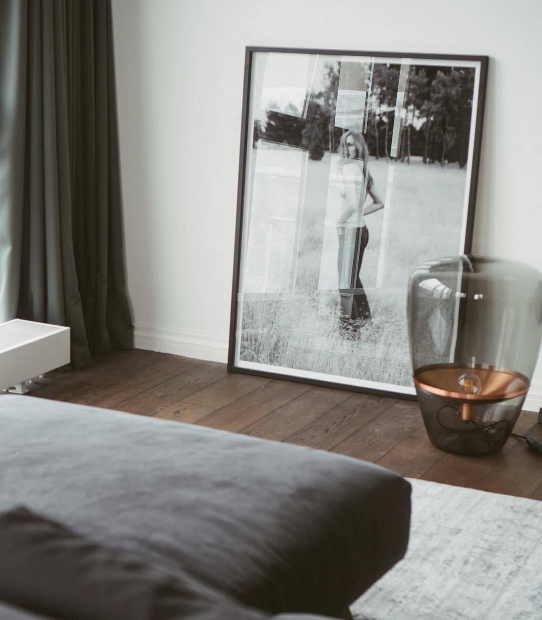 Arisha-lattiavalaisin, monirengas moderni, metalli/pii, valkoinen/musta, sängyn vieressä