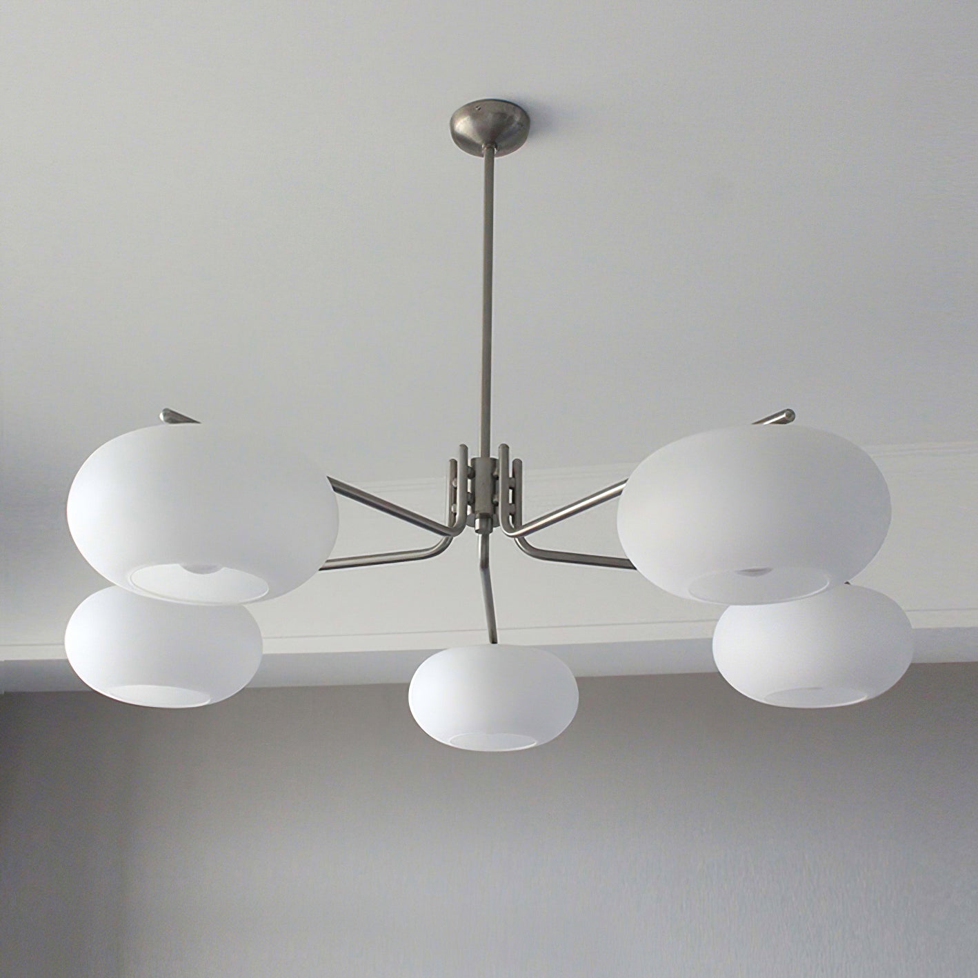 Tiedot Materiaali: metalli, lasi, rauta Valonlähde: LED-lamppu tai Edison-lamppu Valonlähteen perustyyppi: E26 tai E27 (kuten alla) Teho: Max 40W Jännite: AC 110-240V Asennus: Ceiling Ympäristö: Sisätilat Paino: 4kg / 8,8lbs Tehdastoimitus: keskimäärin 5-10 päivää valmisteluun IP: IP20 Akku: Ei Ajuri vaaditaan: Ei Viimeistelyt: hiekkanikkeli, kuparipinnoitus Lasin väri: Valkoinen Prosessi: Muotit, Leikkaus, Leivontamaali Ohjaustapa: painikekytkin (ei himmennettävä) K: Tukeeko se himmennystä? A: Se, tukeeko se himmennystä, riippuu ostamastasi lampun tyypistä. Jos ostat himmennyspolttimo, tämä lamppu saavuttaa himmennystoiminnon. Ripustustangon pituus 50 cm/19,7 tuumaa. Ripustustangon pituutta voidaan muuttaa pyynnöstä. (Ota yhteyttä)