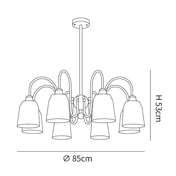 8 Lamppujen koko: Halkaisija 85 cm x K 53 cm / ∅ 31,5" x K 15"