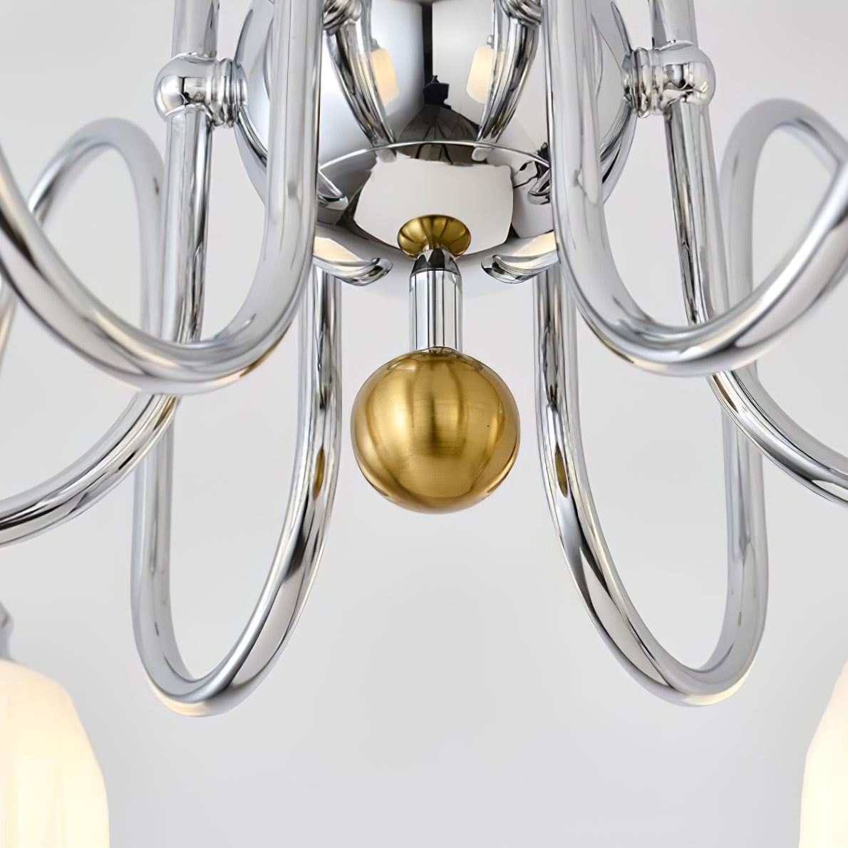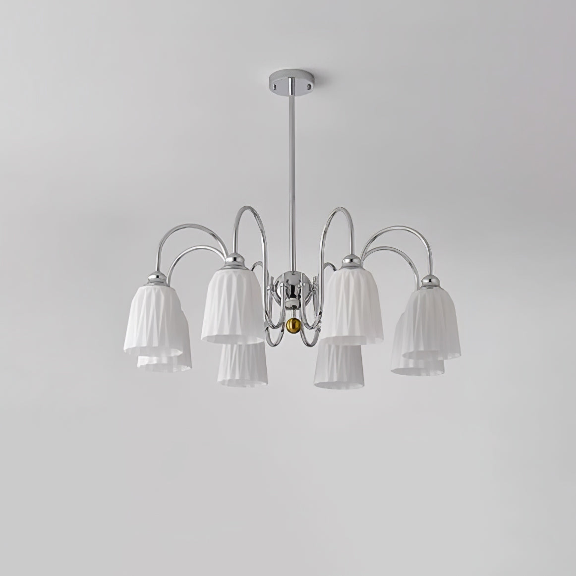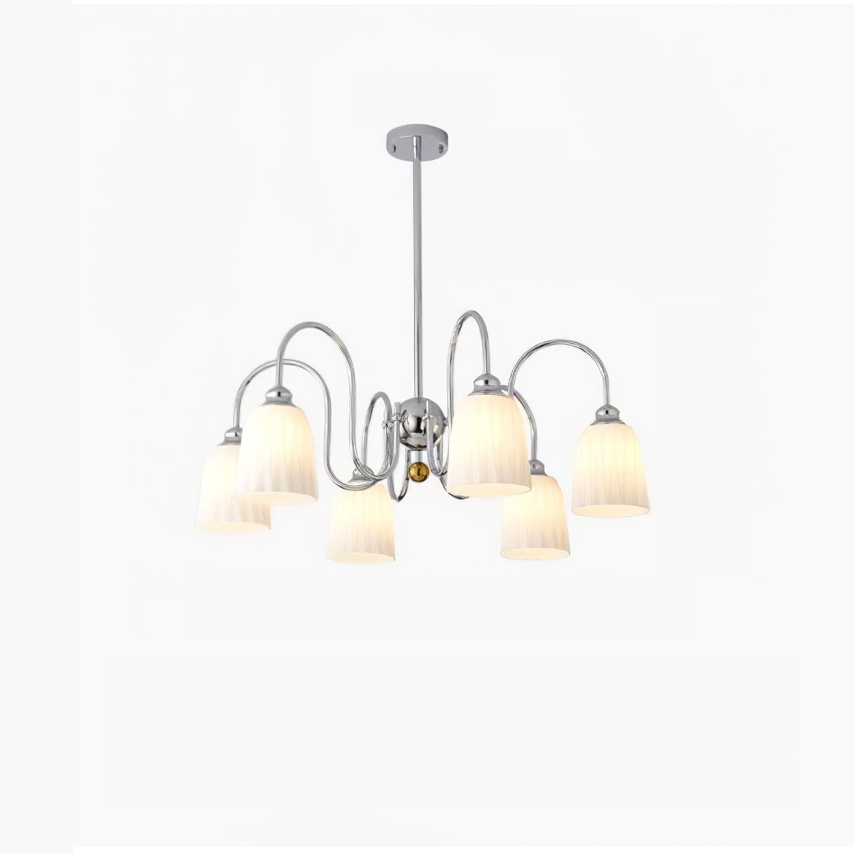 Tuo klassinen art deco -tyyli kotiisi Bauhausin laskostetulla kattokruunulla. Tämä laskostetusta valkoisesta lasista valmistettu ja vuosisadan puolivälin Bauhaus-tyyliin suunniteltu kattokruunu on ajaton lisä jokaiseen huoneeseen. Sen modernit linjat ja sulavat muodot tuovat ylellisen tunnelman ja valaisevat kotisi hienostuneella suunnittelulla.