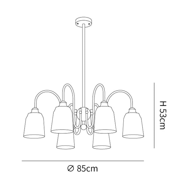 6 Lamppujen koko: Halkaisija 85 cm x K 53 cm / ∅ 23,6″ x K 15″