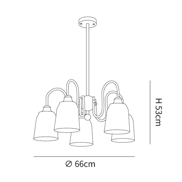 5 Lamppujen koko: Halkaisija 66 cm x K 53 cm / ∅ 23,6″ x K 15″