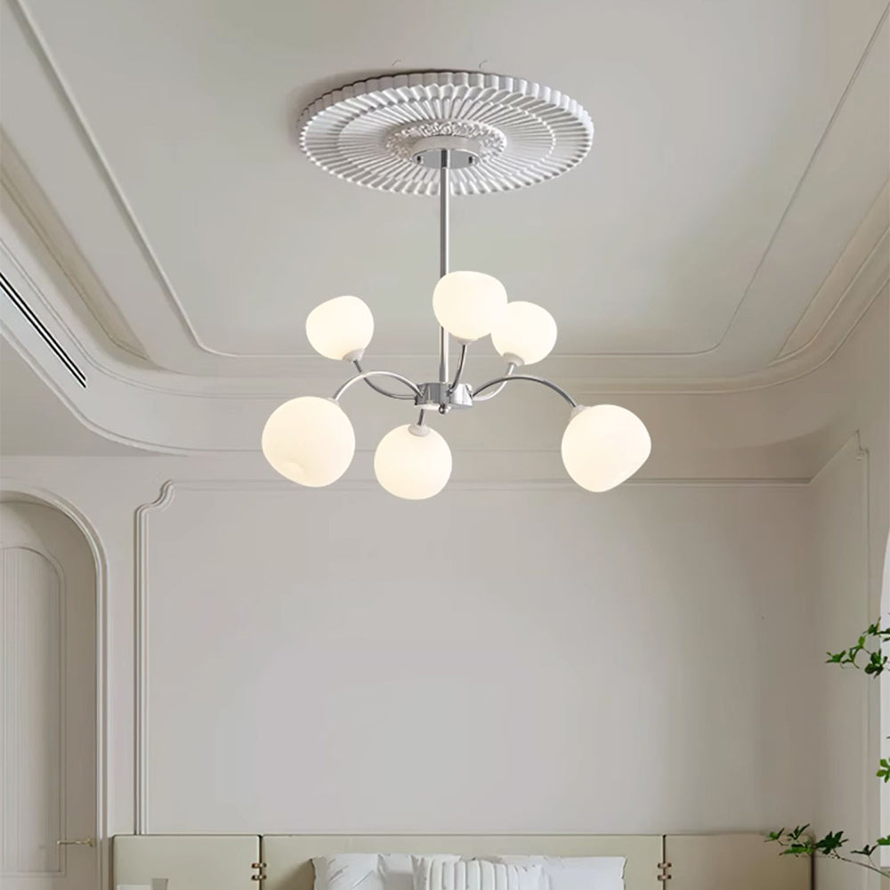 Bauhaus White Glass Globe -kattokruunu ruokasaliin