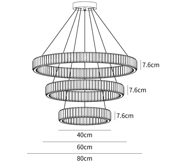 3 Tasojen koko: Halkaisija 40 + 60 cm + 80 cm