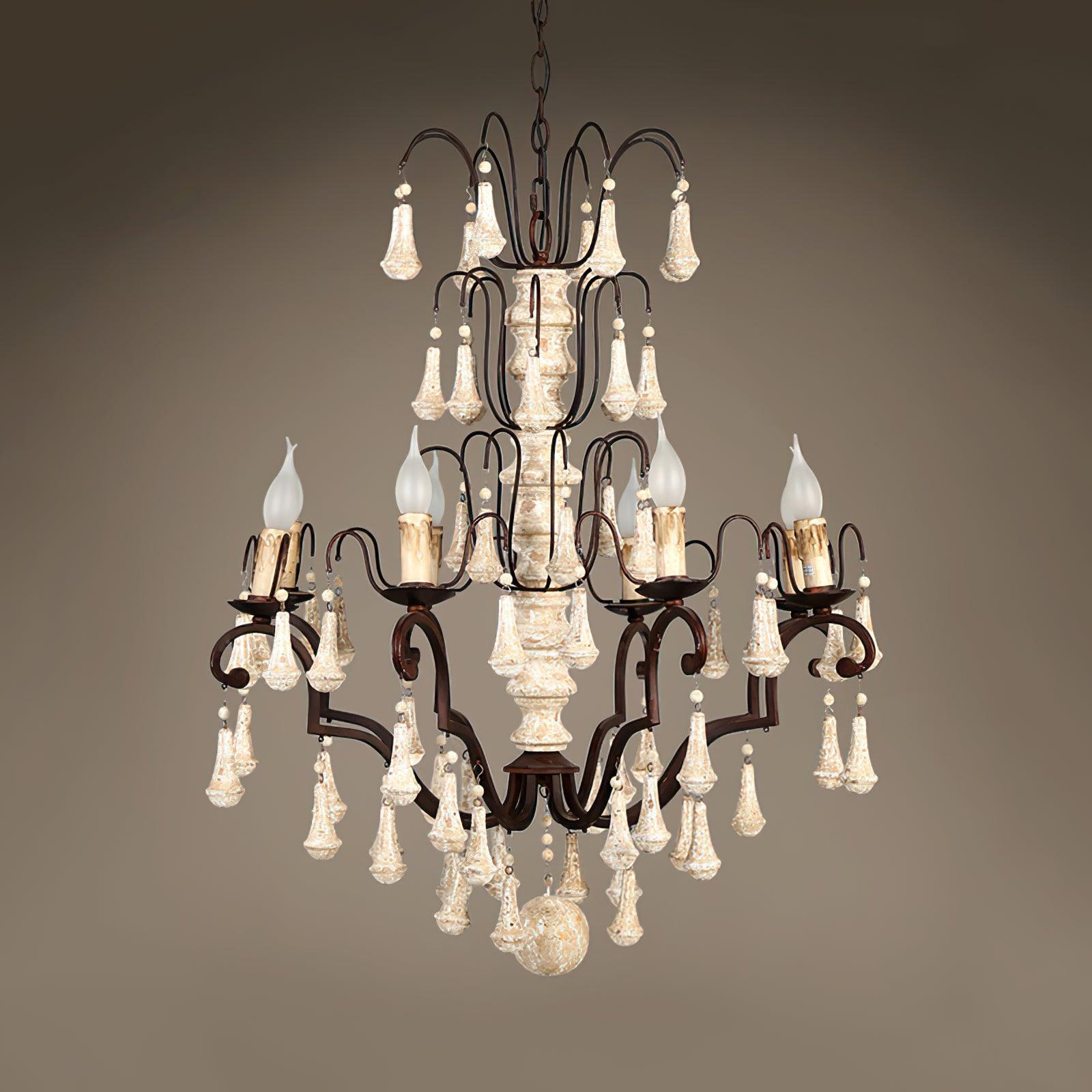 Tämä 8 valoriipus on täydellinen tuomaan vintage-hienoa tunnelmaa ruokasaliin tai olohuoneeseen. Klassisessa suunnittelussa on maalaismaisia elementtejä, kuten haalistua puuta ja ruskeat kynttilänjalat. Joustimainen pitkä ja hoikka runko ja riippuvat helmiyksityiskohdat tarjoavat monet elementit ylellisyyden tunteen.