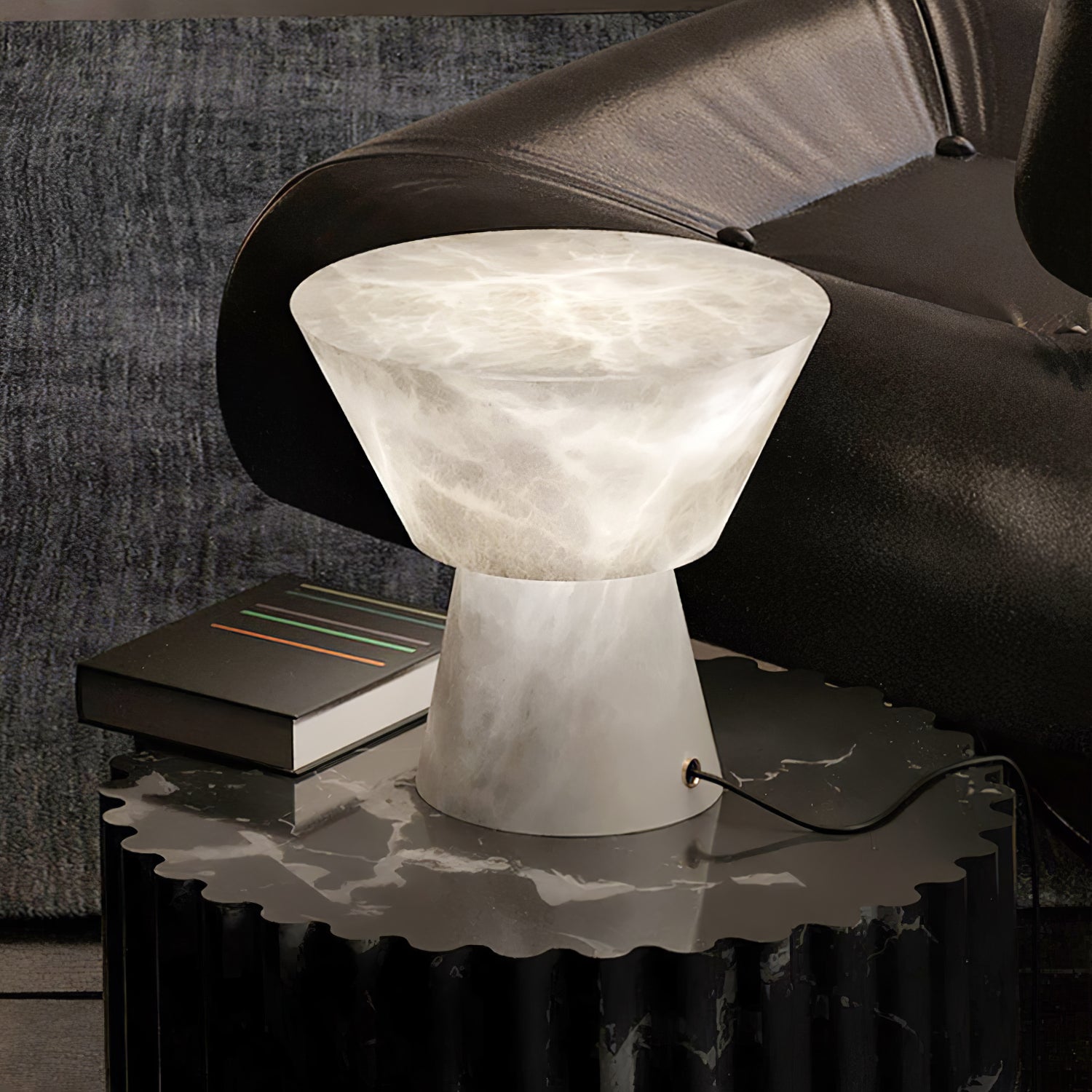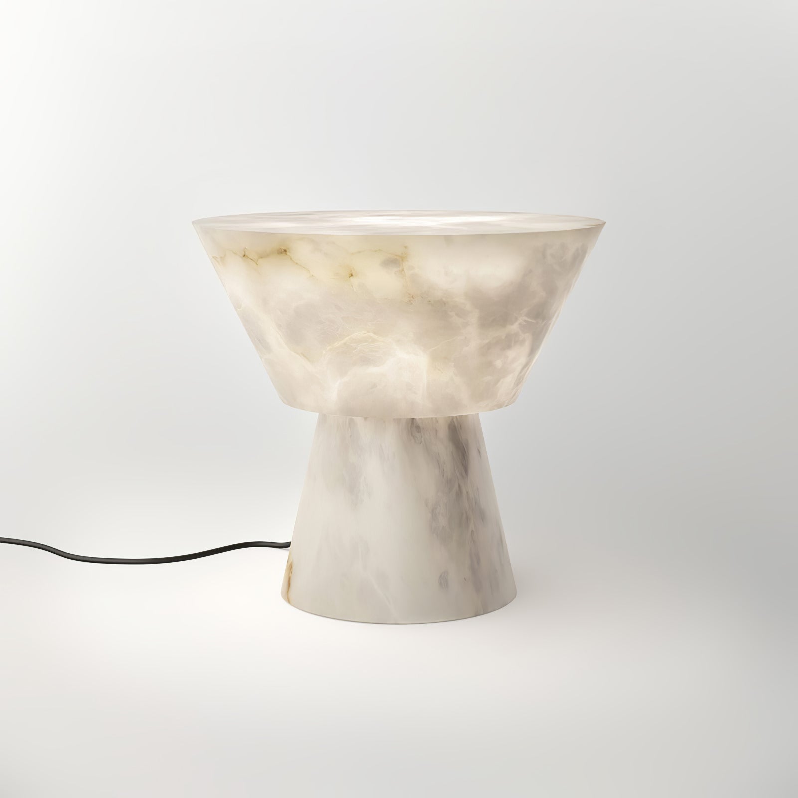 Beta Marble -pöytävalaisin tarjoaa tyylikkään ilmeen mihin tahansa huoneeseen. Sen nykyaikainen ja ajaton muotoilu luo kahdella kartiomaisella muodolla, jotka on erotettu toisistaan herkällä kullatulla messingisellä koristelistalla, ja se säteilee pehmeää, lämmintä hehkua korostaen alabasterin monimutkaista kauneutta.