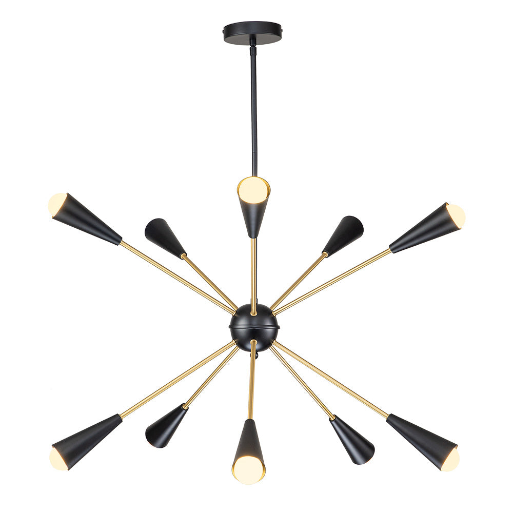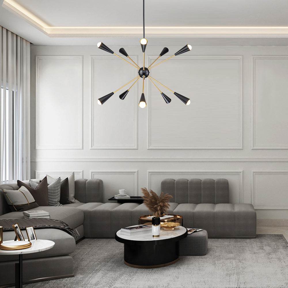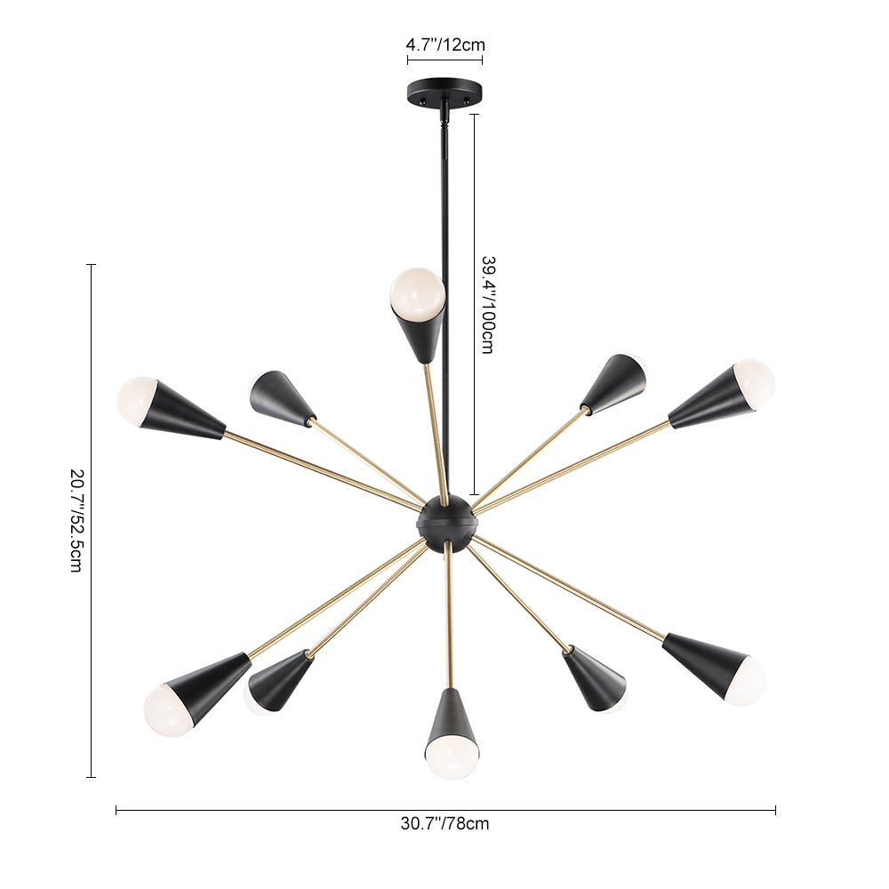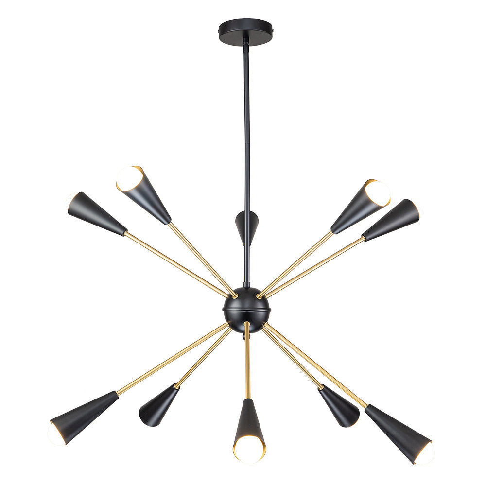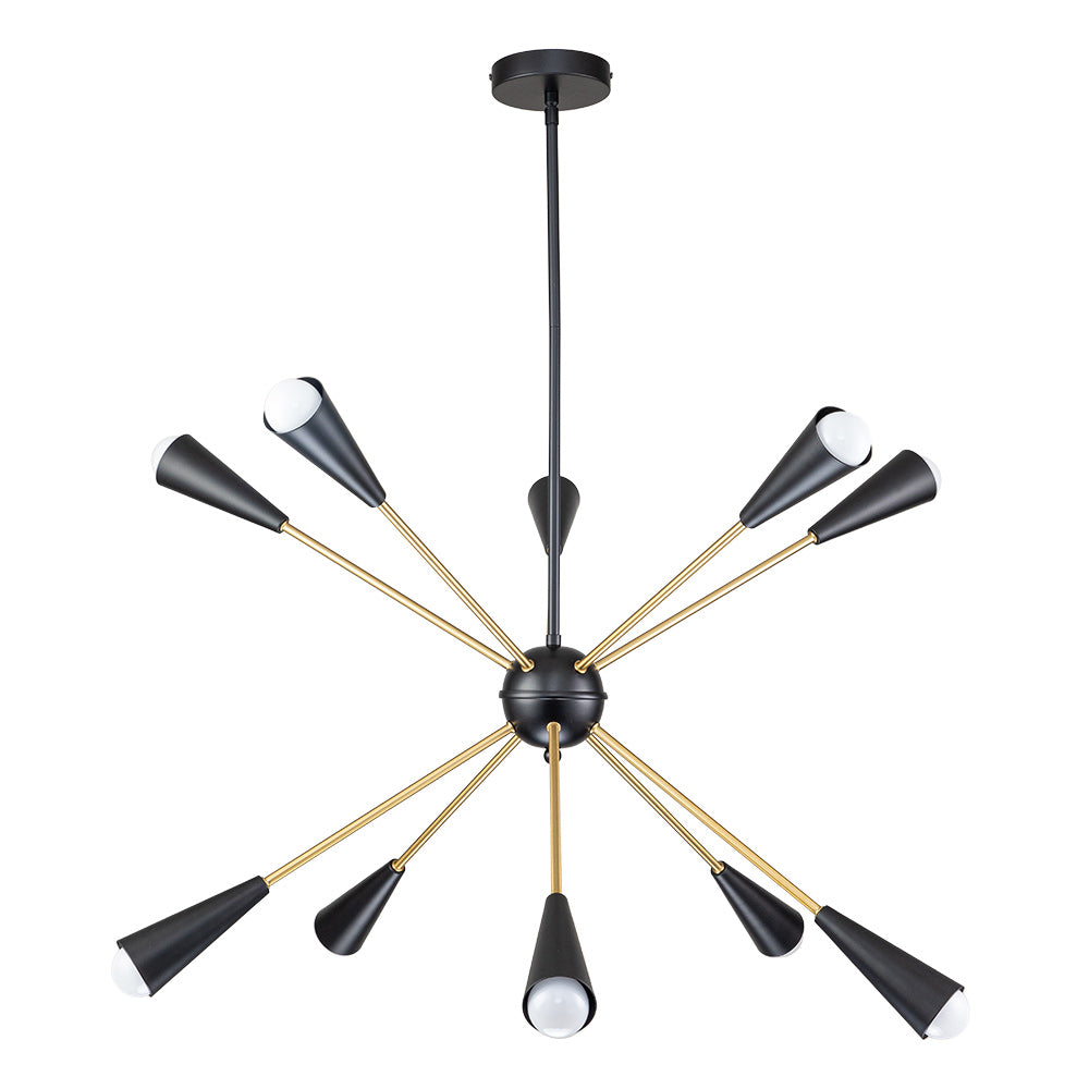Kymmenen valoa • Musta + messinkiviimeistely • Starburst-muotoilu • kartiokanta • E26/E27 keskikantaiset polttimot (ei sisälly) • Kiinteä • UL-listattu/CE-listattu