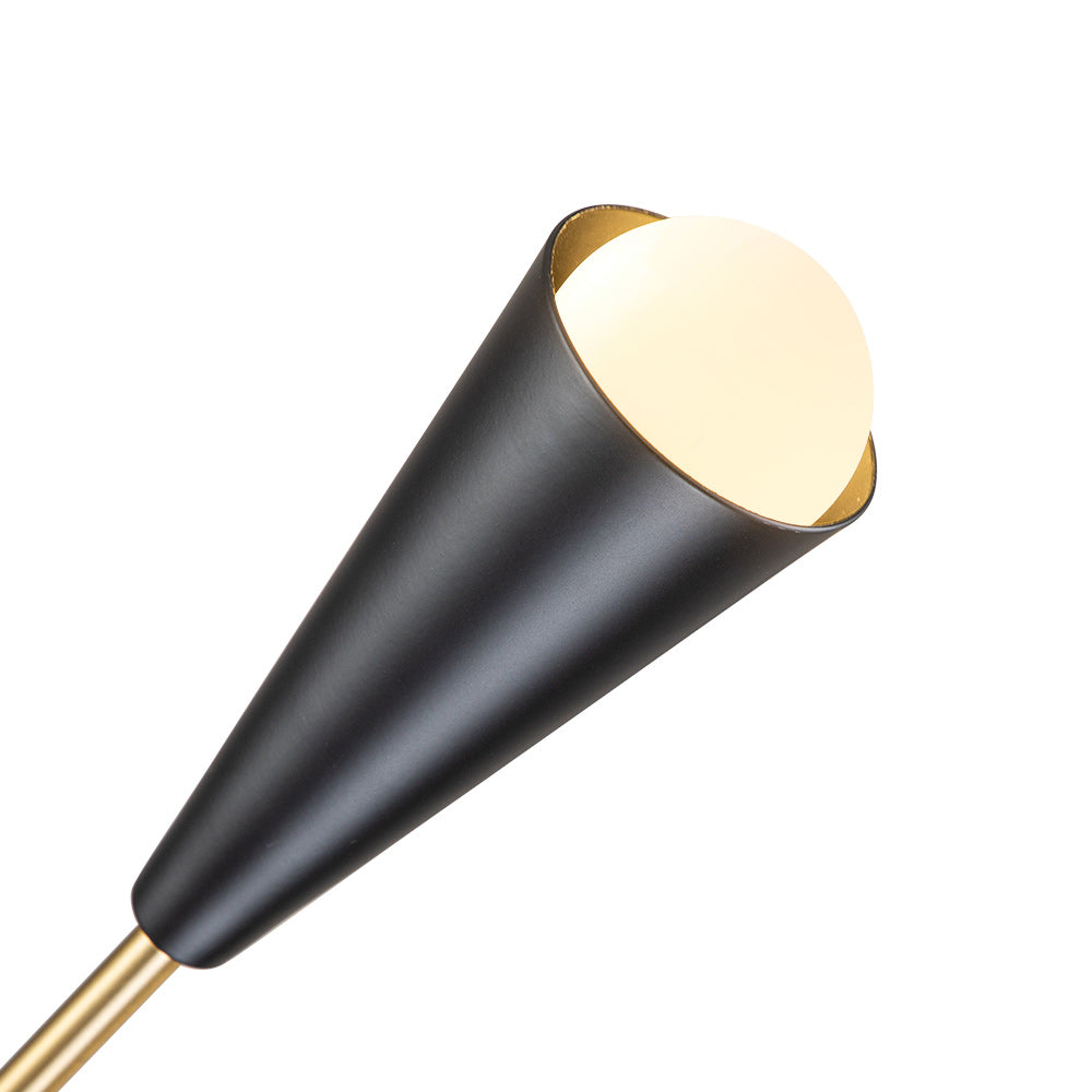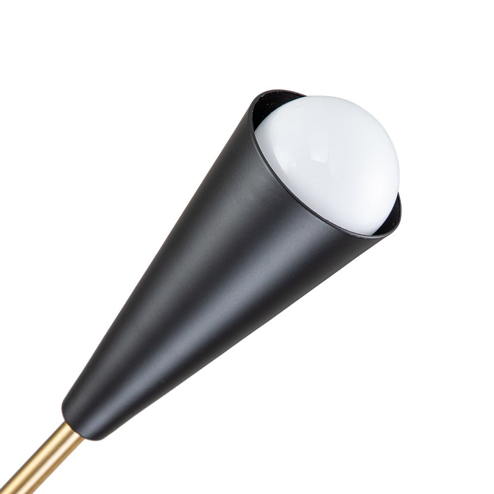 Löydä virkistävää huvia tästä modernista vuosisadan puolivälin kattokruunusta. Tämä 10-kevyinen sputnik-kruunu on viimeistelty mattamustan ja harjatun messingin klassisella väriyhdistelmällä, ja siinä on kartion muotoiset kantat, jotka koristavat 10 hoikan varren päitä, jotka purskahtavat esiin keskipallosta. Keskikantaiset E26/E27-polttimot (ei sisällä) sijoittuvat kartiokantoihin ja täyttävät tämän sputnik-valaisimen hienostuneen ja mukaansatempaavan ilmeen. (A19-polttimoa suositellaan.) Musta messinki 10 valon sputnik-kattokruunu on keskustelupalsta ruokailutilassa, eteisessä, olohuoneessa tai makuuhuoneessa.Detail