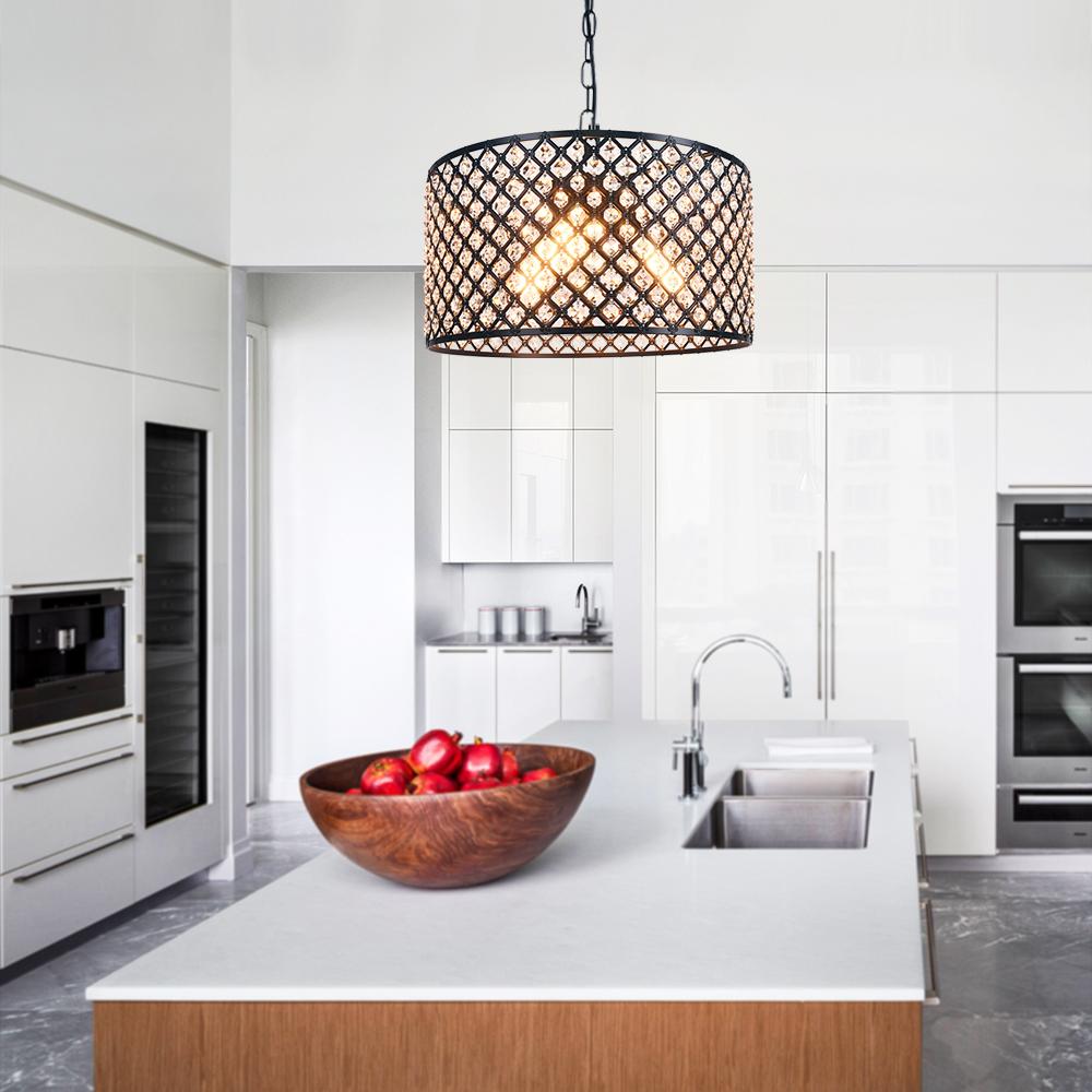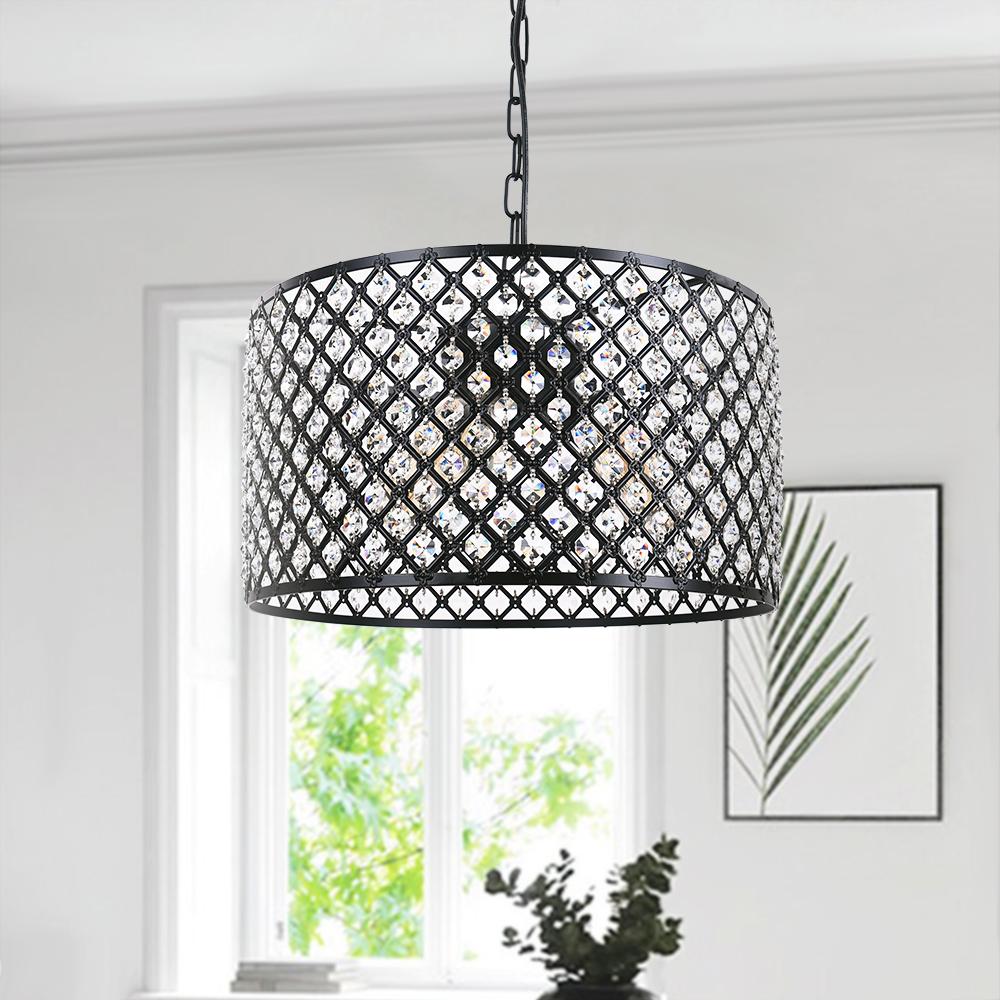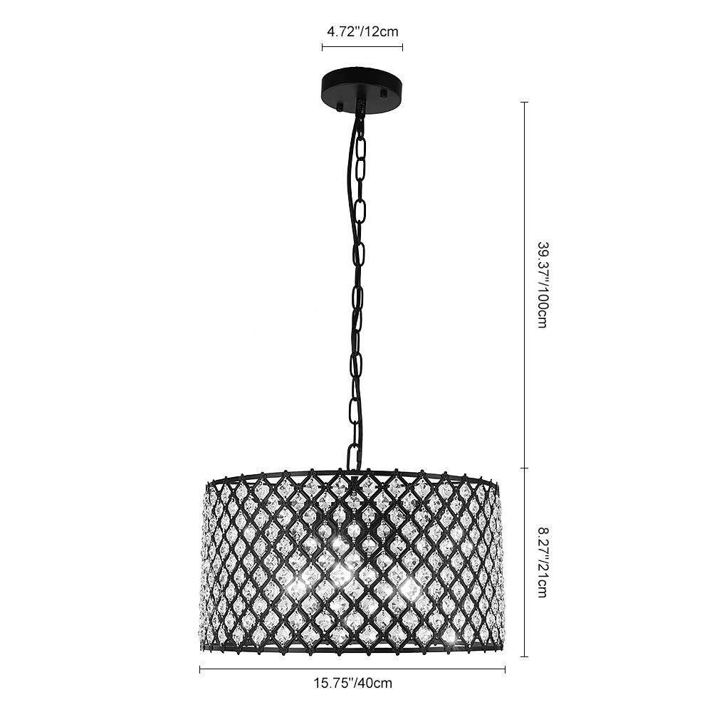Kirjauskappaleena kristallirumpuvalaisimemme tuo siirtymäkautta ruokasaliin, keittiösaarekeen, olohuoneeseen ja makuuhuoneeseen. Tässä säädettävässä ketjussa ja pyöreässä kuomussa riippuvassa rumpuvalaisimissa on metallinen rummun muotoinen kehys, jossa on ristikkokuvioita ja fasetoidut kristallihelmet, joita yhdistää komea musta viimeistely. Kolme 40 W:n E26/E27-keskikantaista polttimoa (ei sisälly toimitukseen) varjostimen sisällä, tämä musta riippuvalo suodattaa valaistuksen kirkkaaksi ympäristön hehkuksi kristallihelmien läpi. Mikä parasta, tämä kristalliriippuvalaisin on yhteensopiva himmentimen ja himmennettävien lamppujen (molemmat eivät sisälly toimitukseen) kanssa, jotka varmistavat, että voit säätää valaistusta haluamallasi tavalla. Täydennä järjestelyjäsi tällä kristalliriippuvalaisimella.