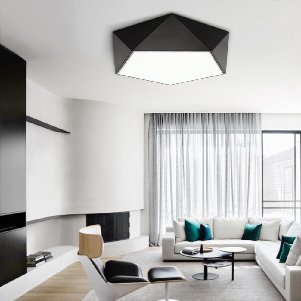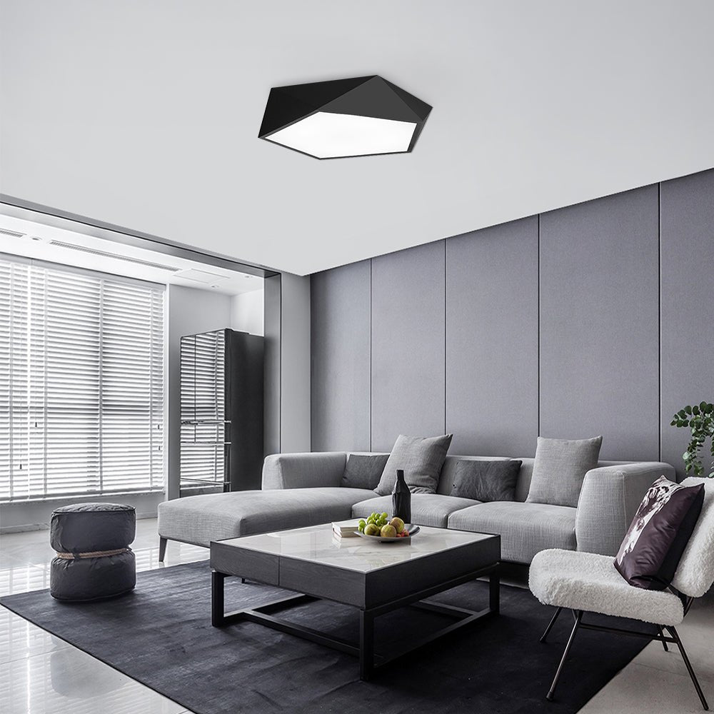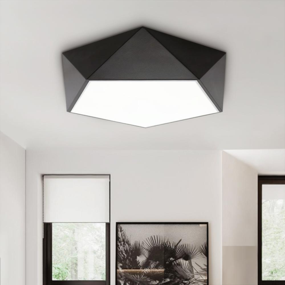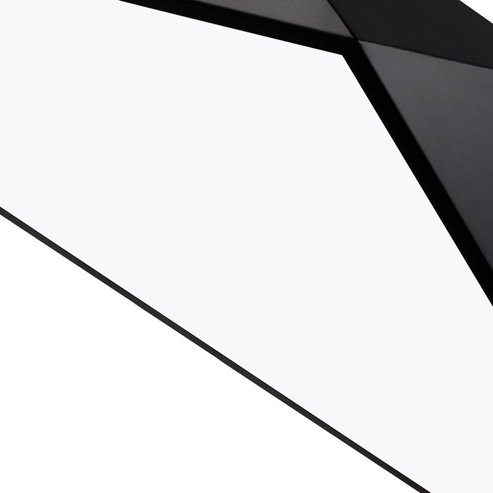 Komea musta viimeistely ja ytimekäs geometrinen muotoilu täydentävät tämän LED-kattovalaisimen. Tässä metallista ja akryylistä valmistetun mustassa uppoasennettavassa kattovalaisimessa on leikattu timantin muotoinen varjostin sisäänrakennetulla LED-moduulilla. Tämä geometrinen uppoasennusvalo tarjoaa tehokkaan työvalaistuksen himmeästä akryylihajottimesta. Mukana toimitetulla kaukosäätimellä himmennettävissä oleva LED-kattovalaisin voi hajauttaa oikean määrän valoa vastaavasti. Valaise keittiösi, olohuoneesi, makuuhuoneesi, ruokailuhuoneesi ja eteinen tällä energiaa säästävällä geometrisella LED-kattovalaisimella.Detail