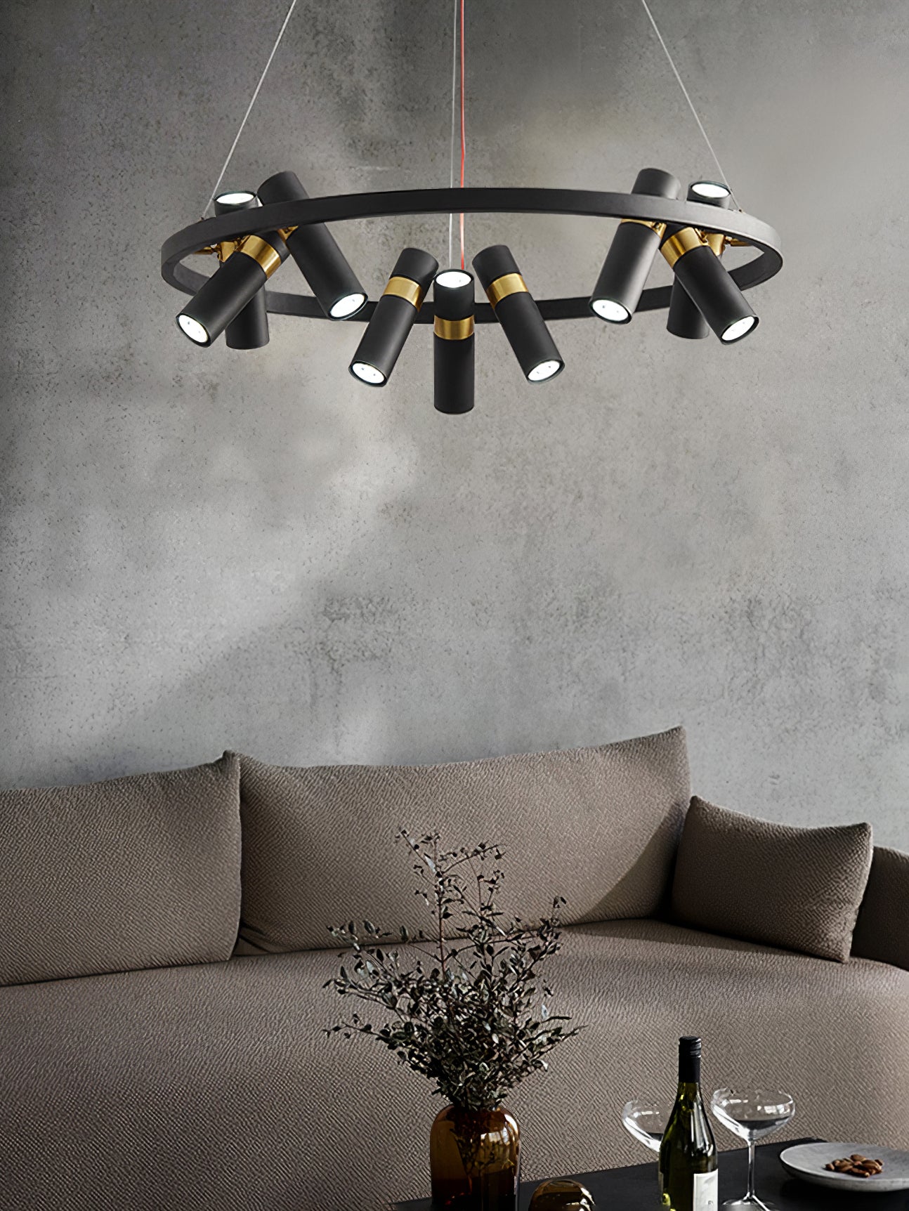 Musta Mutil Pipe Chandelier on ainutlaatuinen ja katseenvangitsija valaisin. Se on saanut inspiraationsa kohdevaloista, jotka keräävät useita mustia putken muotoisia valoja pyöreään runkoon. Musta kehys antaa sille modernin ja tyylikkään ulkonäön. Jokainen putken muotoinen valo lähettää kirkasta ja lämmintä valoa, joka muistuttaa kohdistettuja valonsäteitä. Kun kaikki nämä valot valaistaan yhdessä, koko tila valaistuu, mikä luo ainutlaatuisen ja häikäisevän tunnelman. Black Mutil Pipe Chandelier ei ole vain toimiva valaisin; se on myös taideteos, joka lisää tyyliä ja nykyaikaa mihin tahansa sisätilaan. Olipa kyseessä asuintalo, ravintola tai toimistotila, siitä tulee näyttävä sisustus, joka tarjoaa tilaan ainutlaatuisen valaistuskokemuksen.