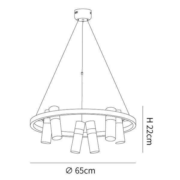 6 Lamppujen koko: Halkaisija 65 cm x K 22 cm / ∅ 25,6″ x K 8,7″