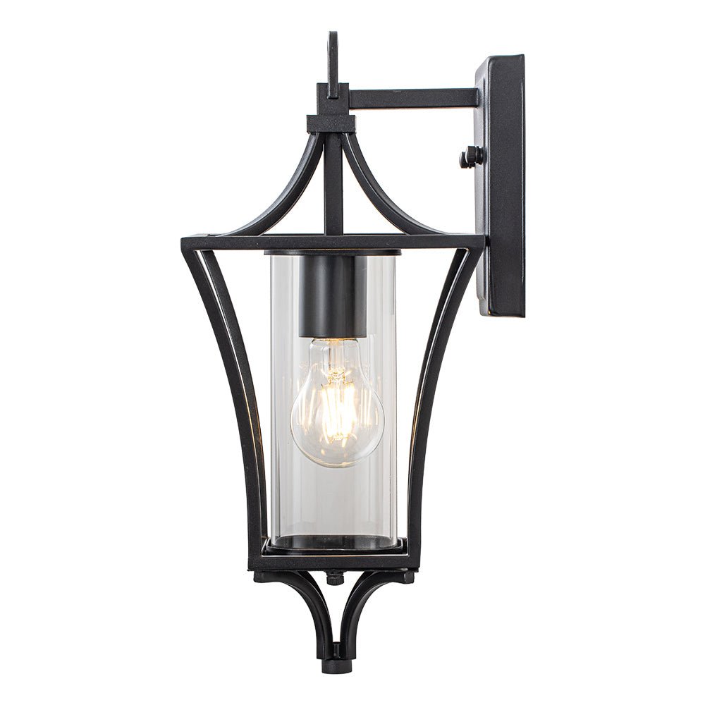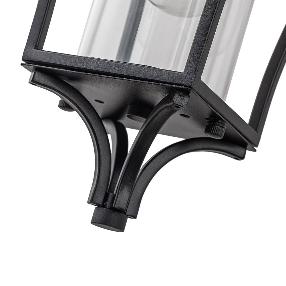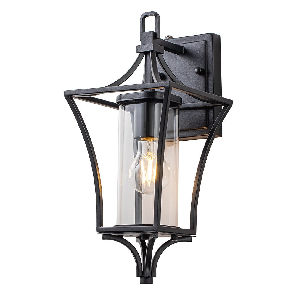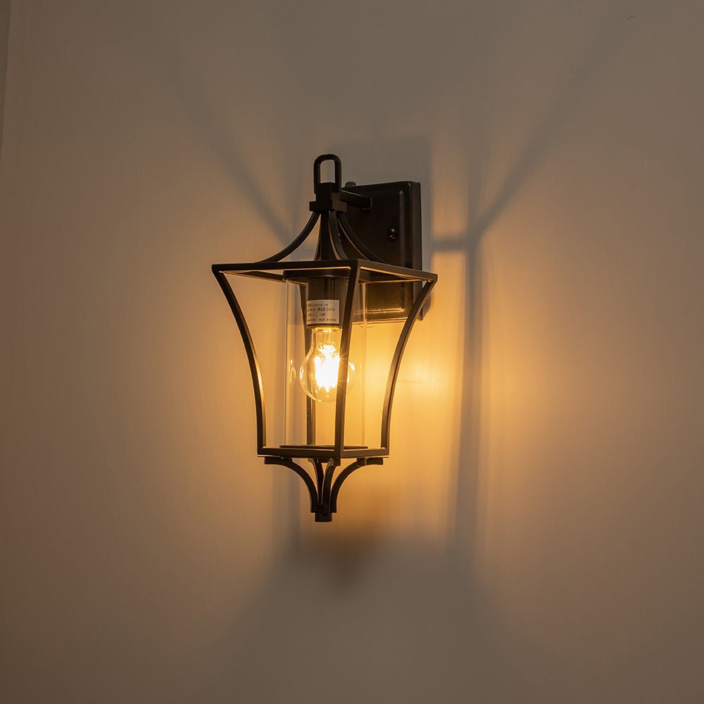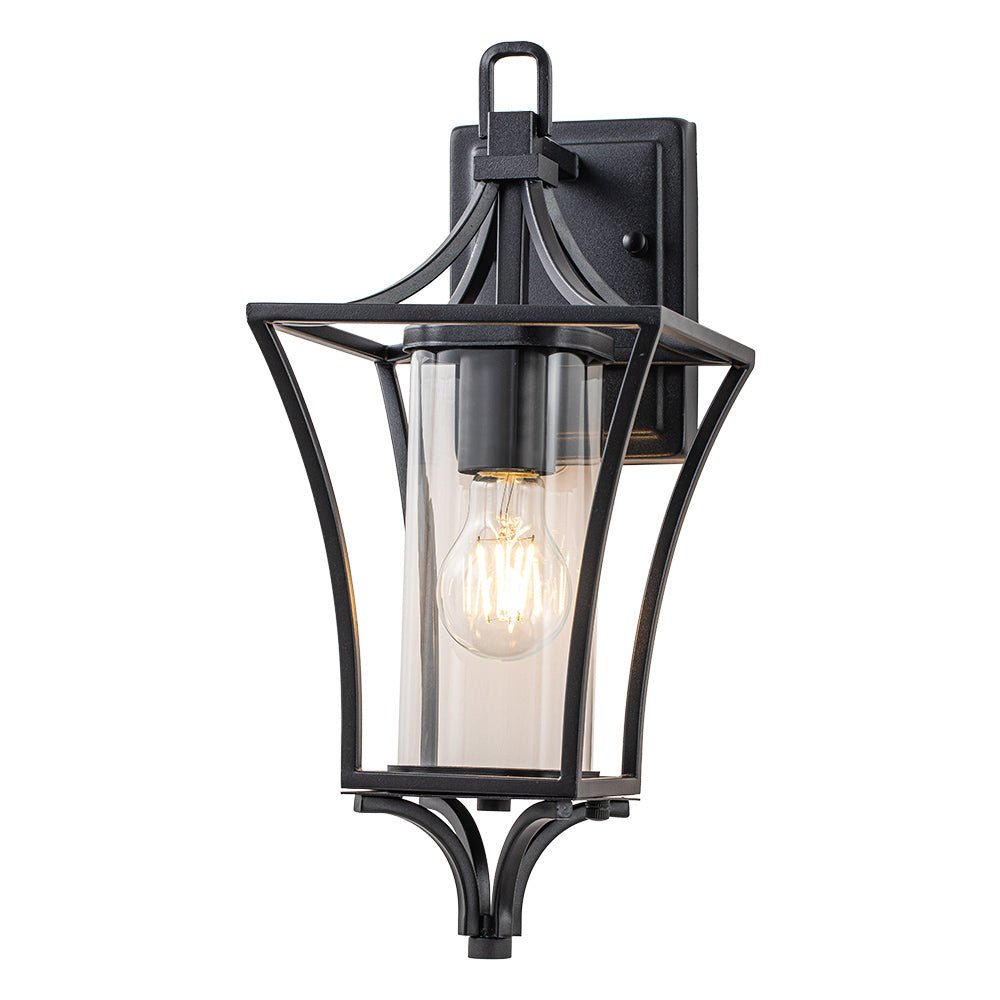 1 Valo • Ulkovalo • Vedenpitävä (IP44) • Hämärästä aamunkoittoon • Lyhty • Kirkas lasi • Mattamusta viimeistely • E26-pohjainen polttimo (ei sisälly) • Kiinteä • UL-listattu