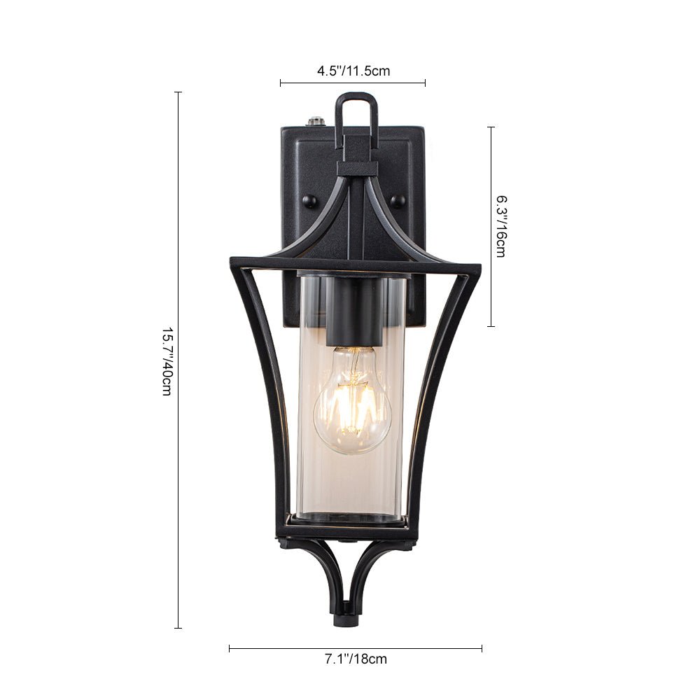 IP44 musta vedenpitävä 1-kevyt lyhty ulkoseinävalaisin