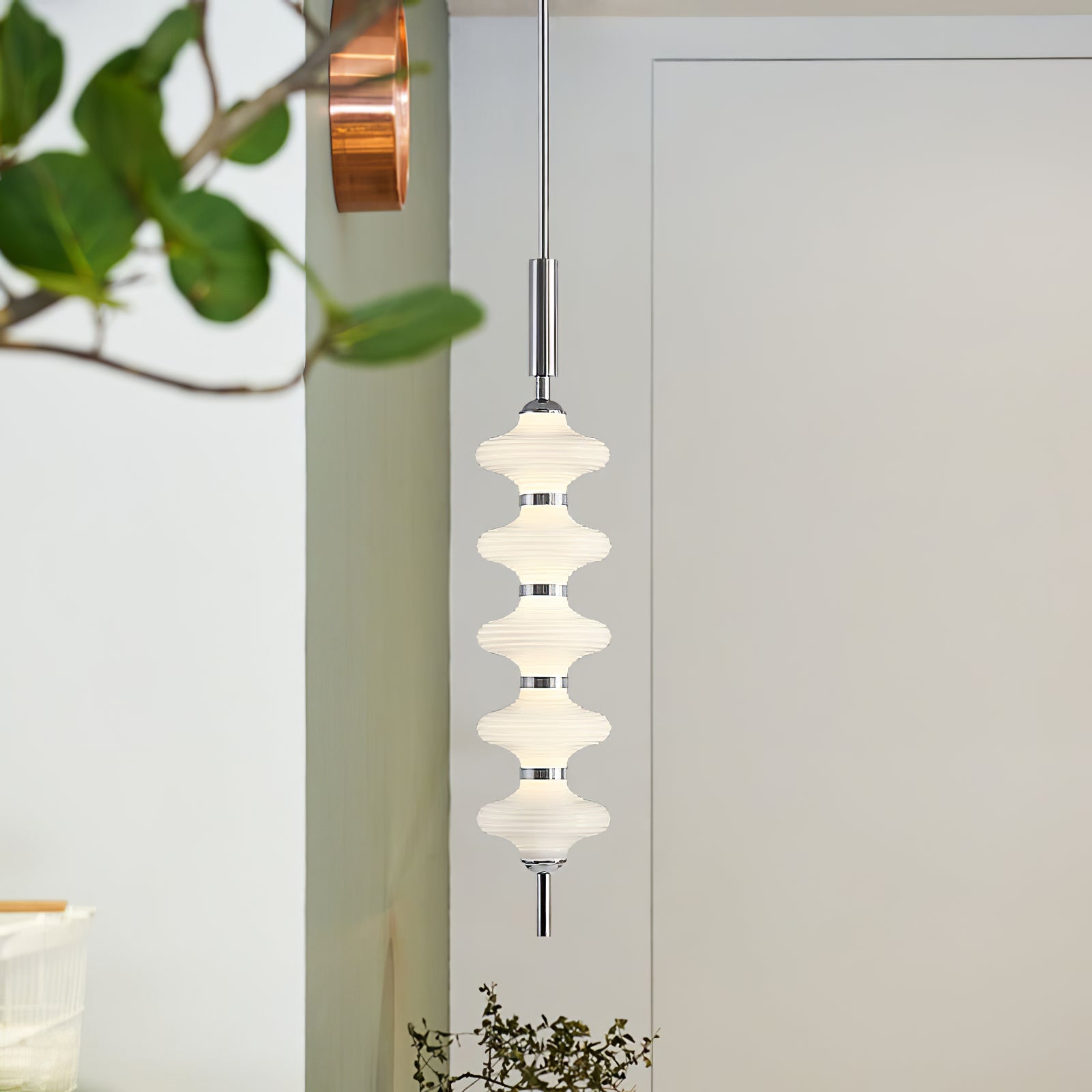 Shade Finish: Valkoinen, läpinäkyvä. Kosteudenkestävyys: IP 20 Kosteusluokitus käytettäväksi kylpyhuoneissa, keittiöissä ja katetuissa ulkotiloissa. Ympäristö: Sisätiloissa Johdot: kiinteä. Ohjaus: Yhteensopiva yleisten painokytkimien kanssa (ei sisälly). 19,7" riippukorkeustanko. Voidaan pidentää pyynnöstä.