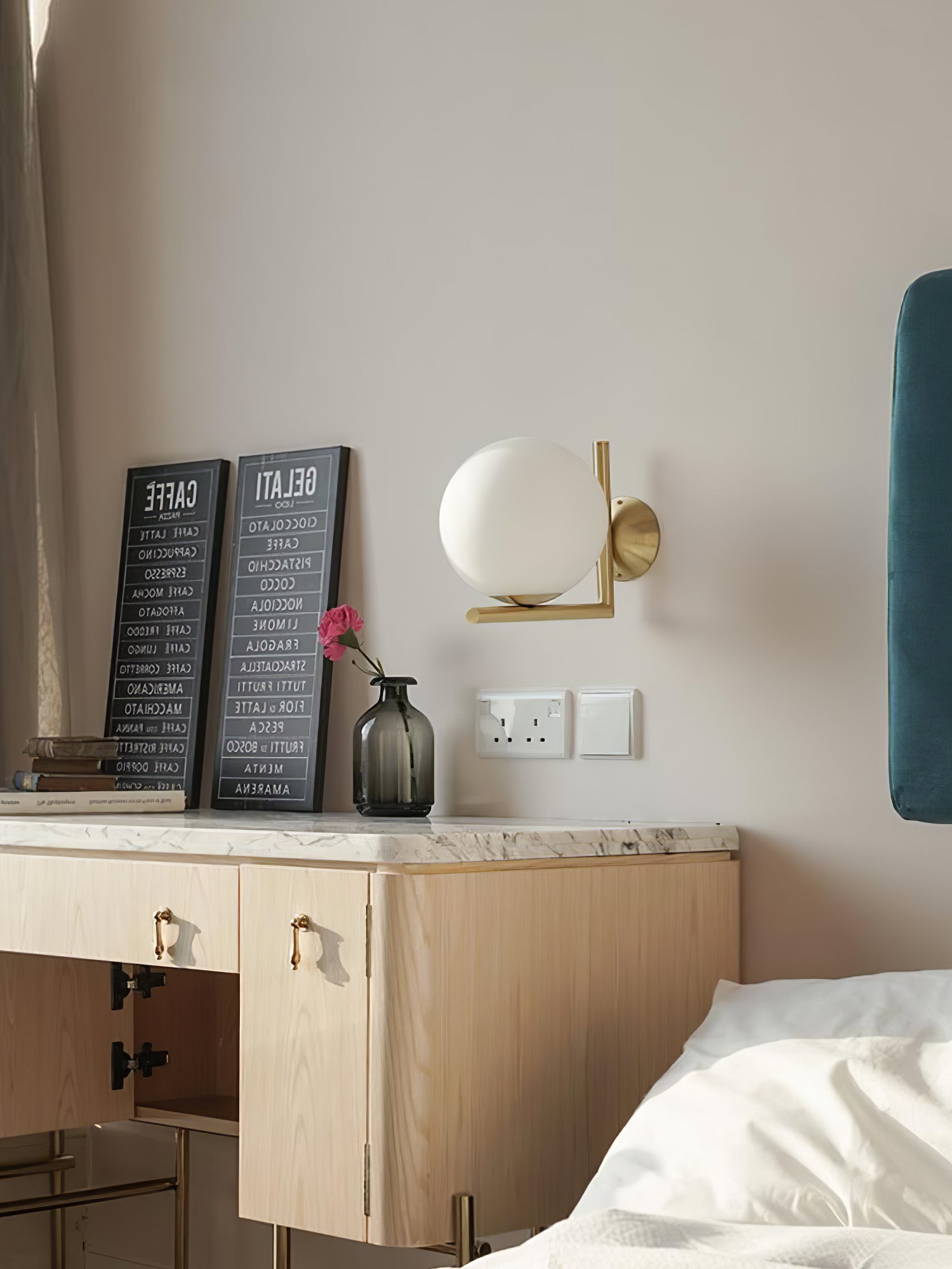 Blown Glass Opal Glass Wall Lamp on tyylikäs ja nykyaikainen seinävalaisin, joka yhdistää metalli- ja lasimateriaalit luoden täydellisen sekoituksen kestävyyttä ja esteettistä viehätystä. Käytetäänpä sitä käytävällä, olohuoneessa tai makuuhuoneessa, tämä seinävalaisin tarjoaa pehmeän ja hajavalaistuksen luoden rauhallisen ja rauhallisen tunnelman.