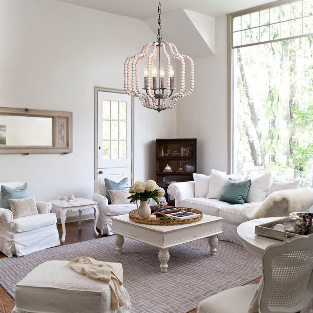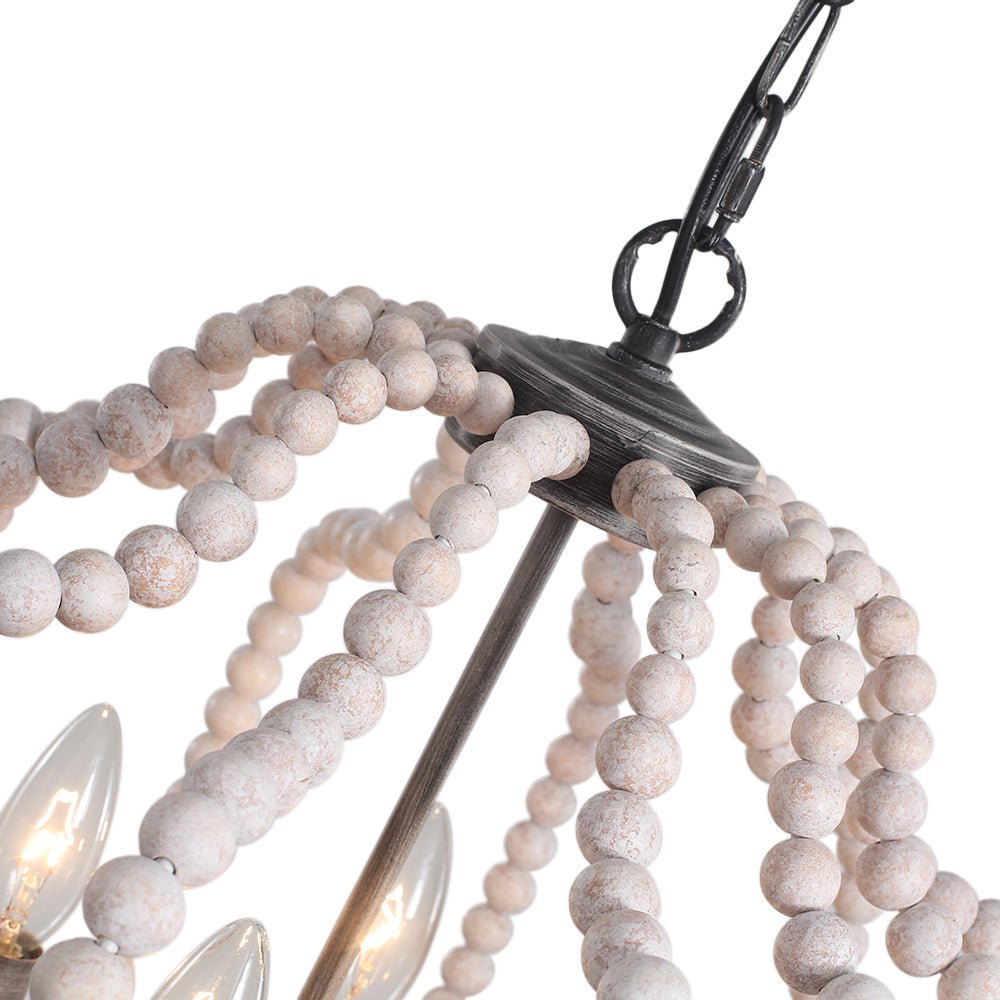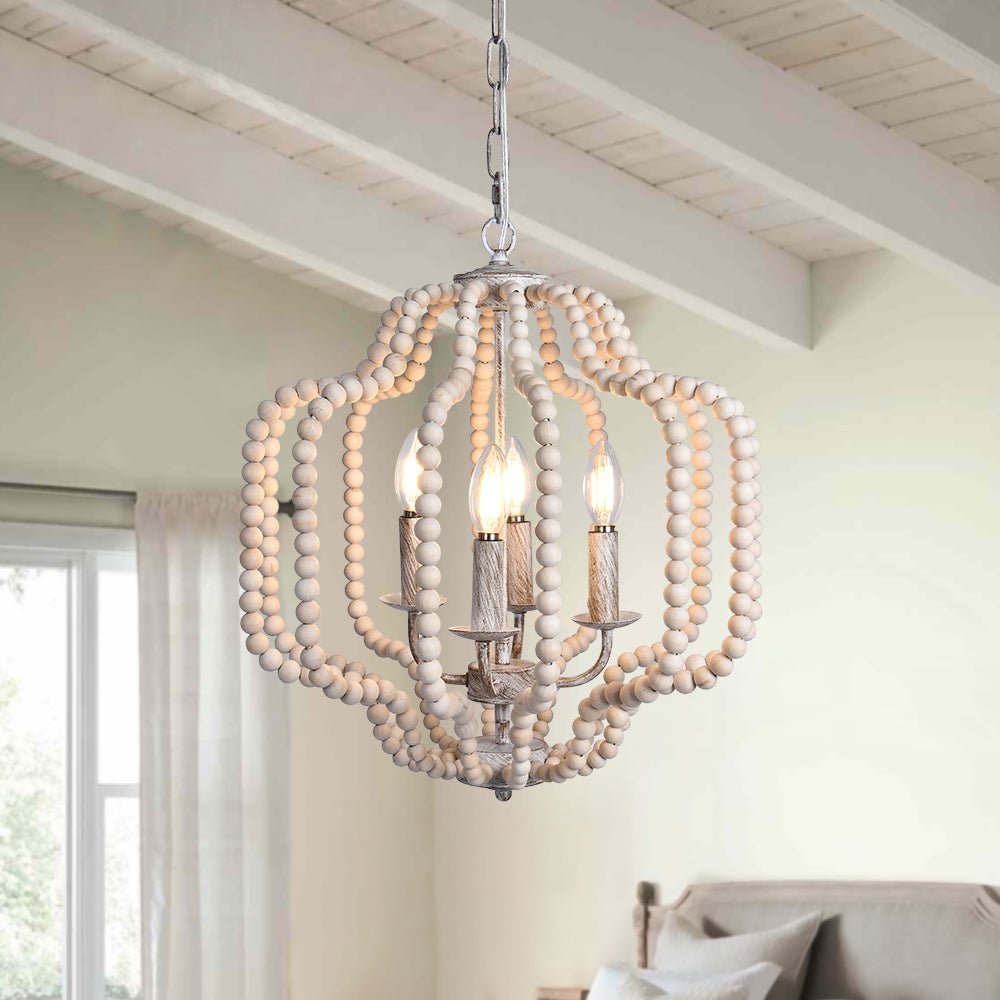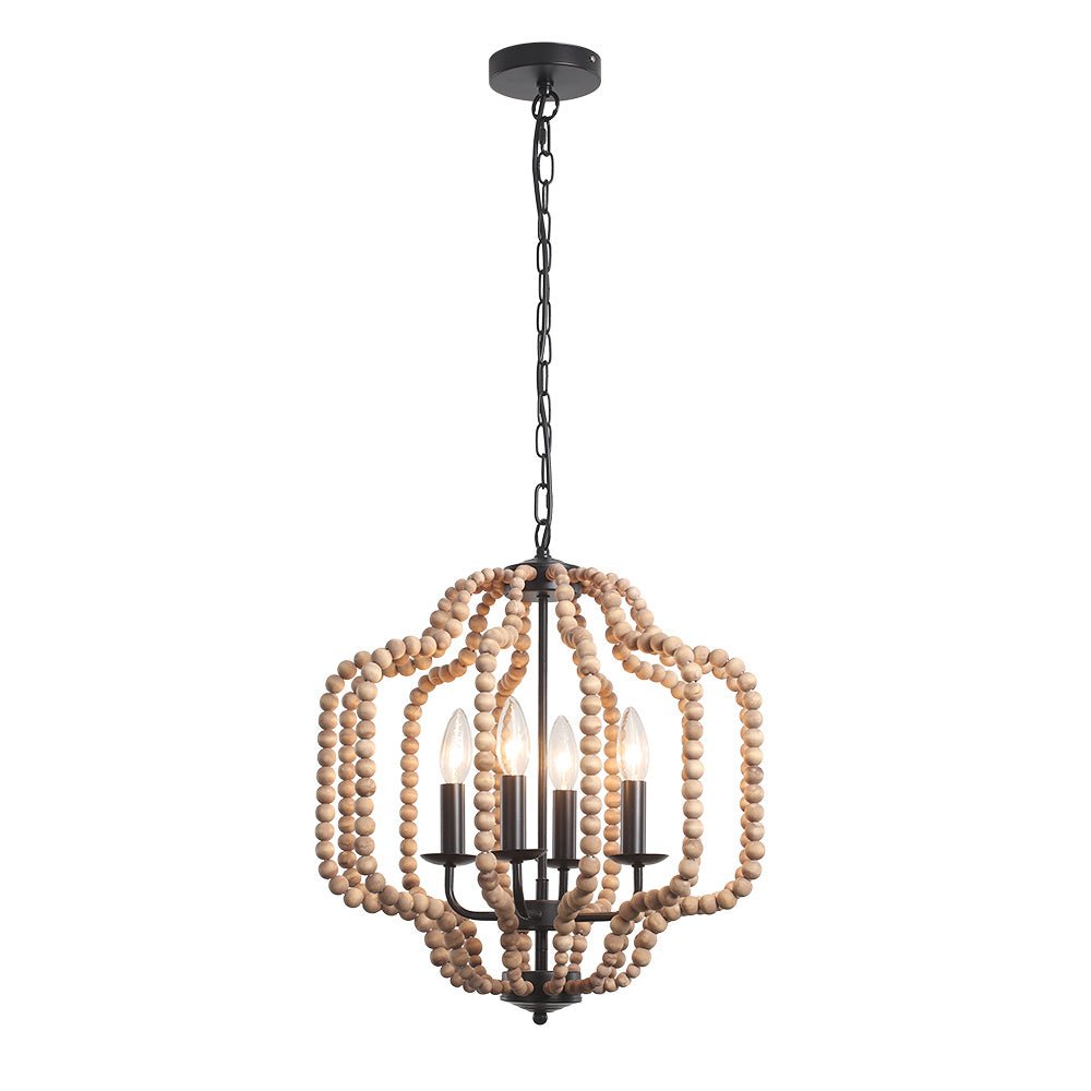 Neljä valoa • Quatrefoil-muotoilu • Puuhelmet • Kynttilätyyli • Boheemi tyyli • E12 kynttelikköpolttimot (ei sisälly) • Kiinteä • UL-listattu