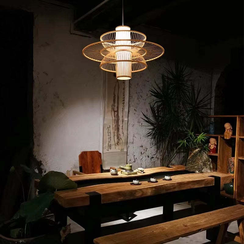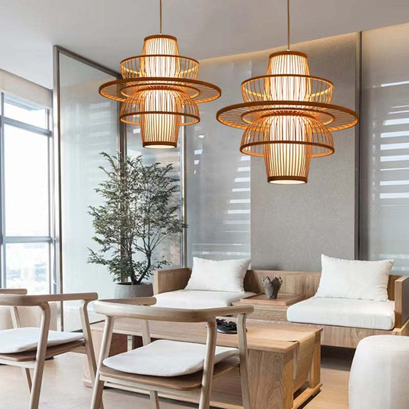 Boho-riippuva kattorattaninen bambu-riippuva valolamppu