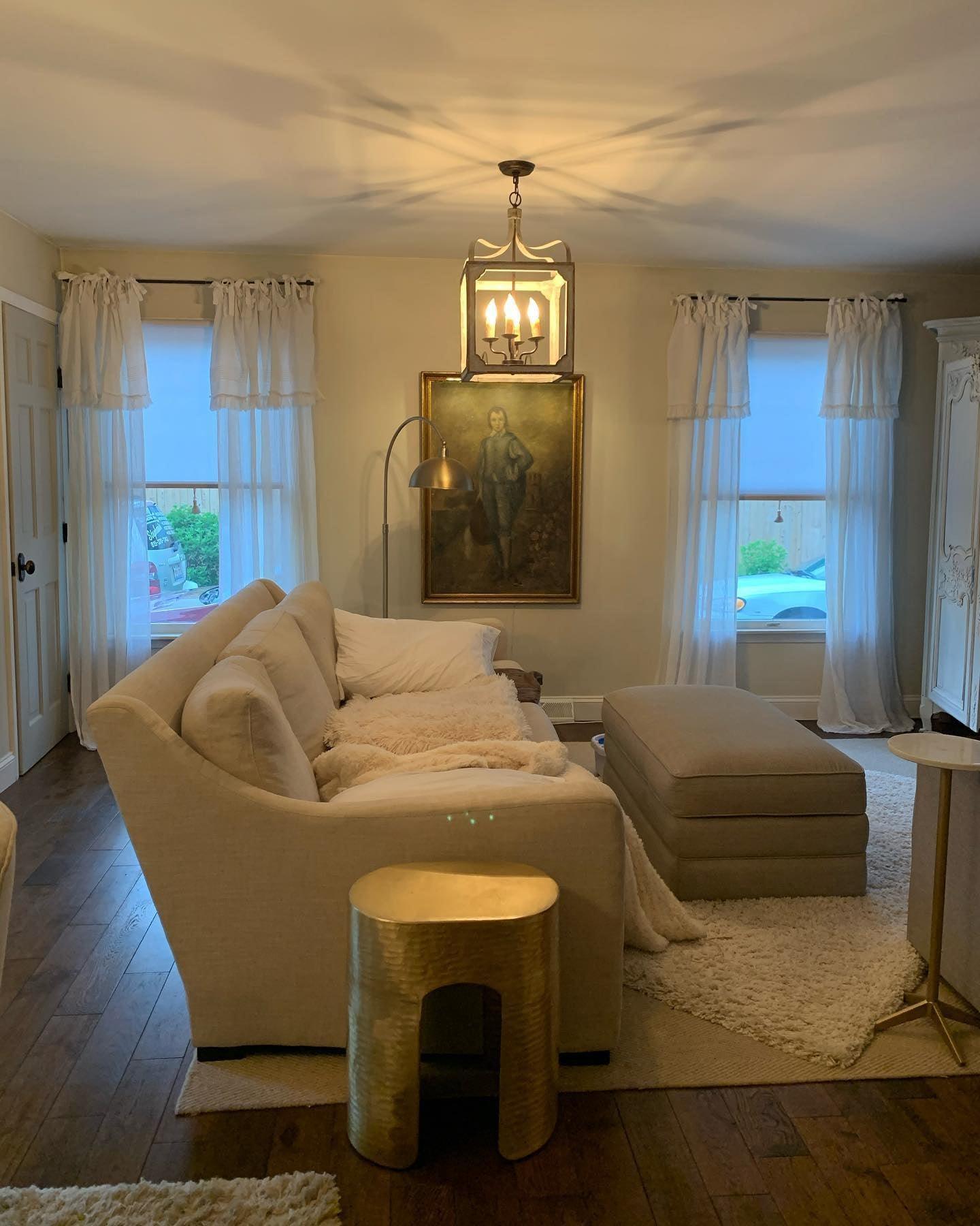 Puurunko pesty harmaalla kullanvärisellä reunuksella on korkealla neljällä rautavarrella, mikä antaa tälle valaisimelle romanttisen, haalistuneen mökkityylisen ilmeen ja tuntuman. Sijoita tämä laatikkomainen lyhty-tyyppinen kattokruunu aulaan tai useaan ryhmään saaren tai ruokapöydän yläpuolelle.