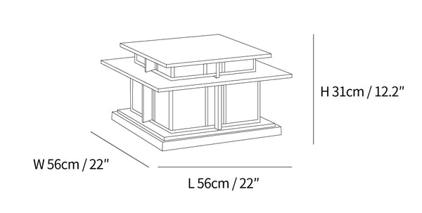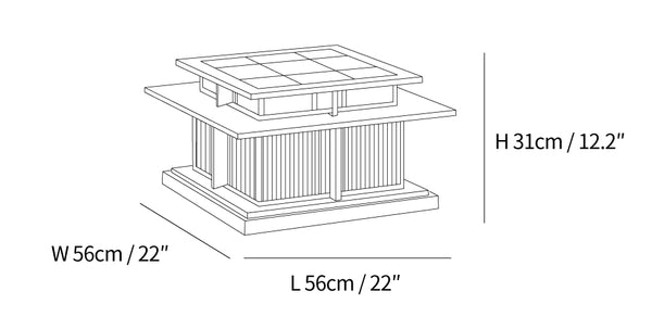 Malli B Koko: P 56 cm x L 56 cm x K 31 cm / P 22″ x L 22 x K 12,2 ″ (Teho ~ 7W, aurinkovoimalla toimiva versio, aurinkoenergialla toimiva versio