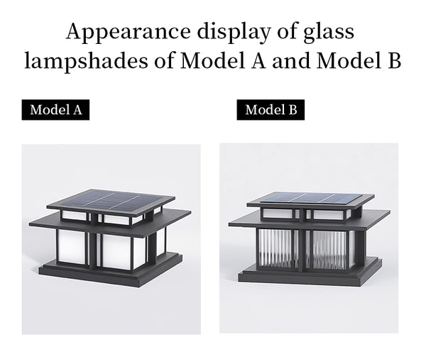 Malli B Koko: P 33,5 cm x L 33,5 cm x K 19 cm / P 13,2 x L 13,2 x K 7,5 tuumaa (teho ~ 3 W, aurinkovoimalla toimiva versio)