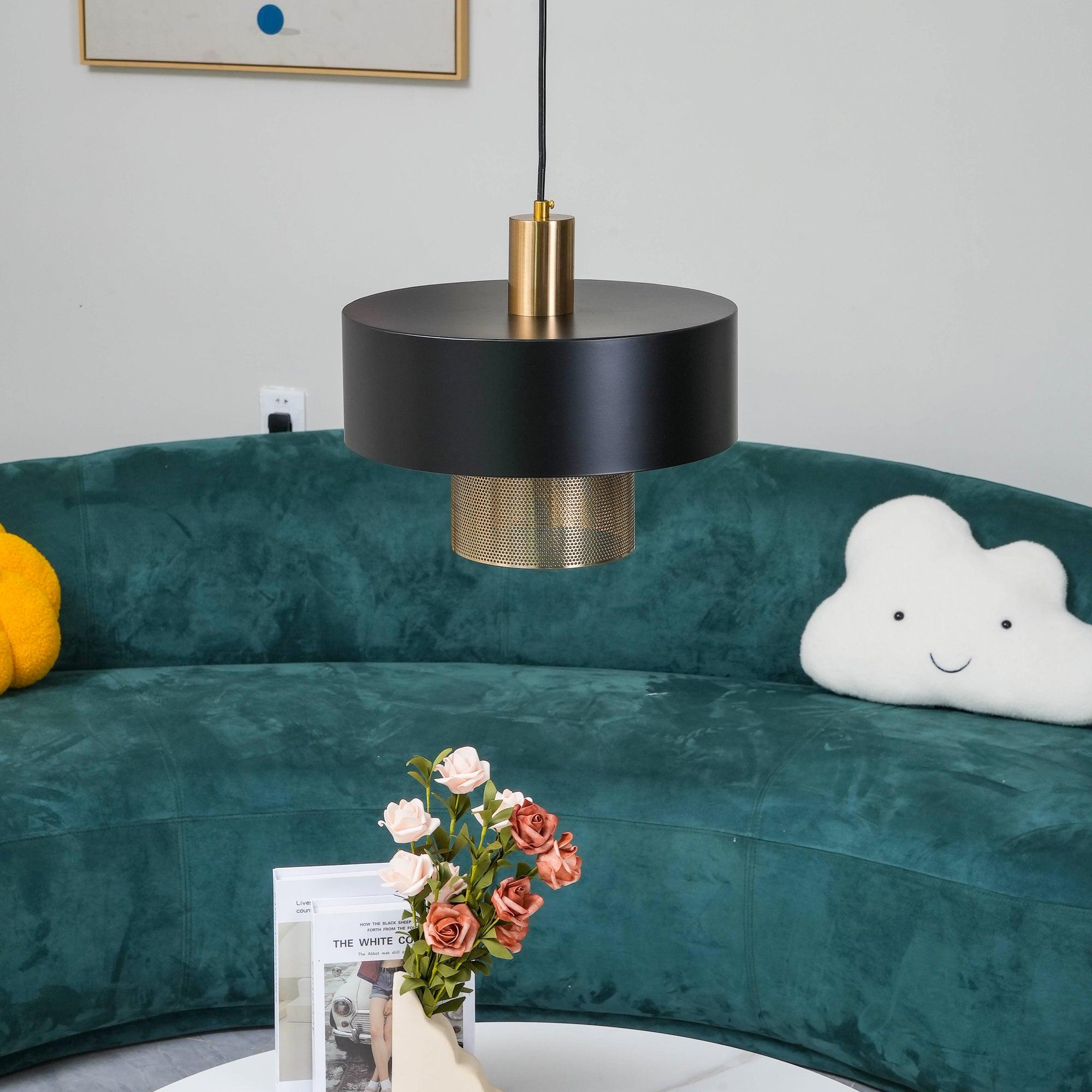 Bradbury-riippuvalaisin on silmiinpistävä muotoilu, joka käyttää kontrastisia viimeistelyjä ja metalleja luomaan korotetun, katseenvangitsijan ilmeen. 60 watin lamppu loistaa kauniisti rei'itetyn kuparisen sisävarjostimen läpi luoden lämpimän hehkun ympäri huonetta. Säädettävä varjostin mahdollistaa ohjaavan valon sinne, missä sitä tarvitaan.