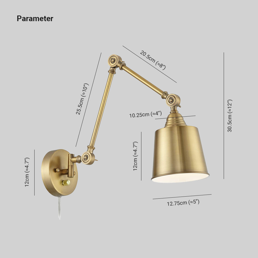 Brady-seinälamppu, säädettävä, metalli, kulta, olohuone