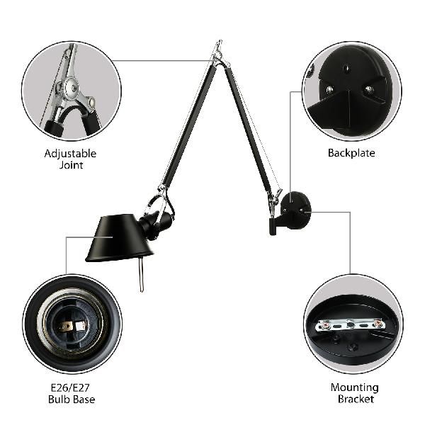 Brady Modern yksinkertainen säädettävä seinävalaisin, musta/kromi, makuuhuone