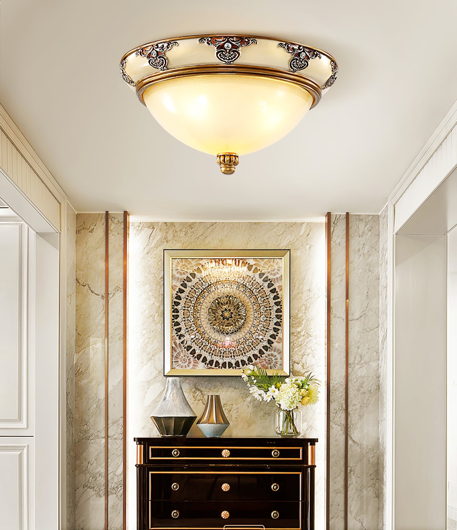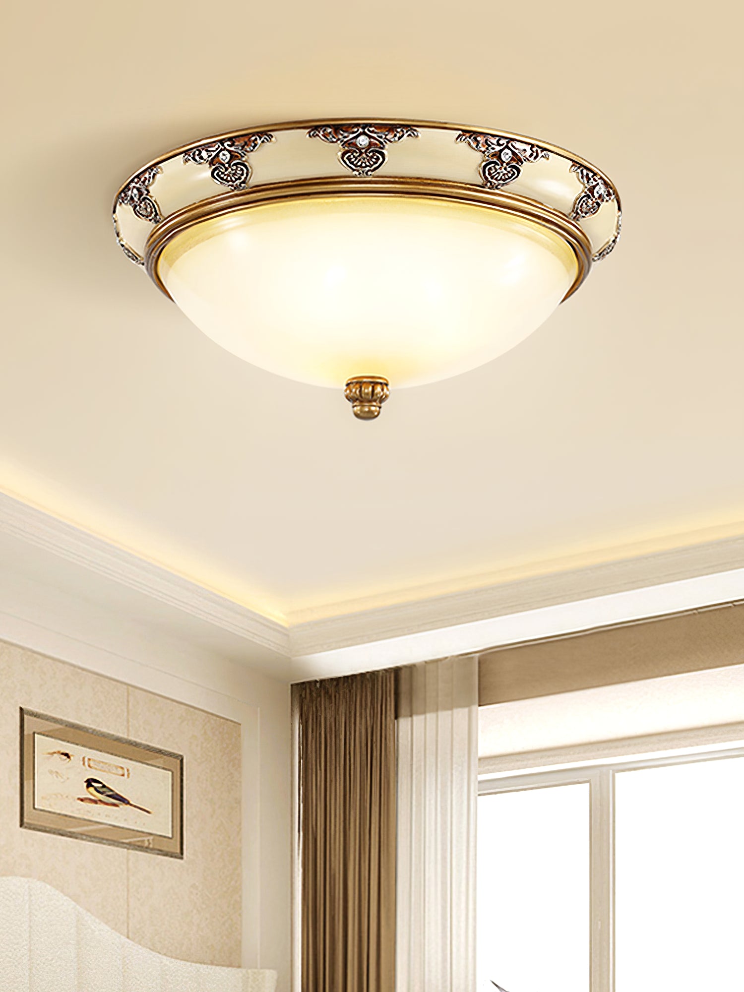 Muuta kotisi Brahm Flush Ceiling Lightilla. Tämä ainutlaatuinen muotoilu, jossa on antiikkibeige lautasviimeistely ja himmeä lasi, lisää modernia kosketusta ja katseenvangitsijaa mihin tahansa huoneeseen. Sisällytä tämä osa sisustukseen ja anna lausunto.