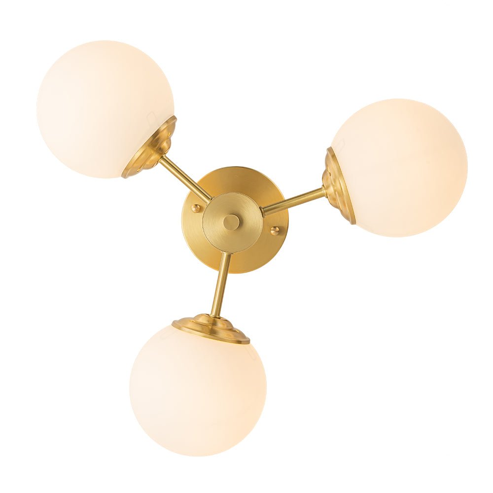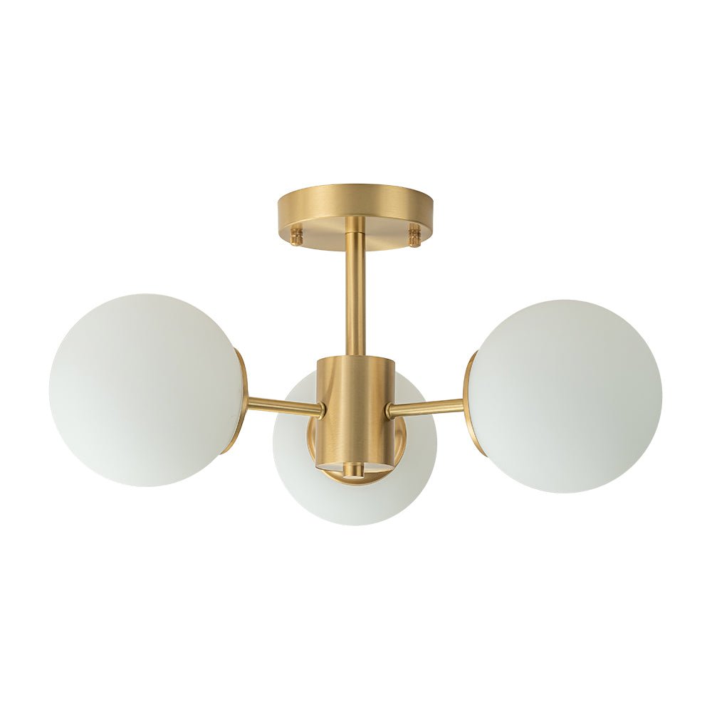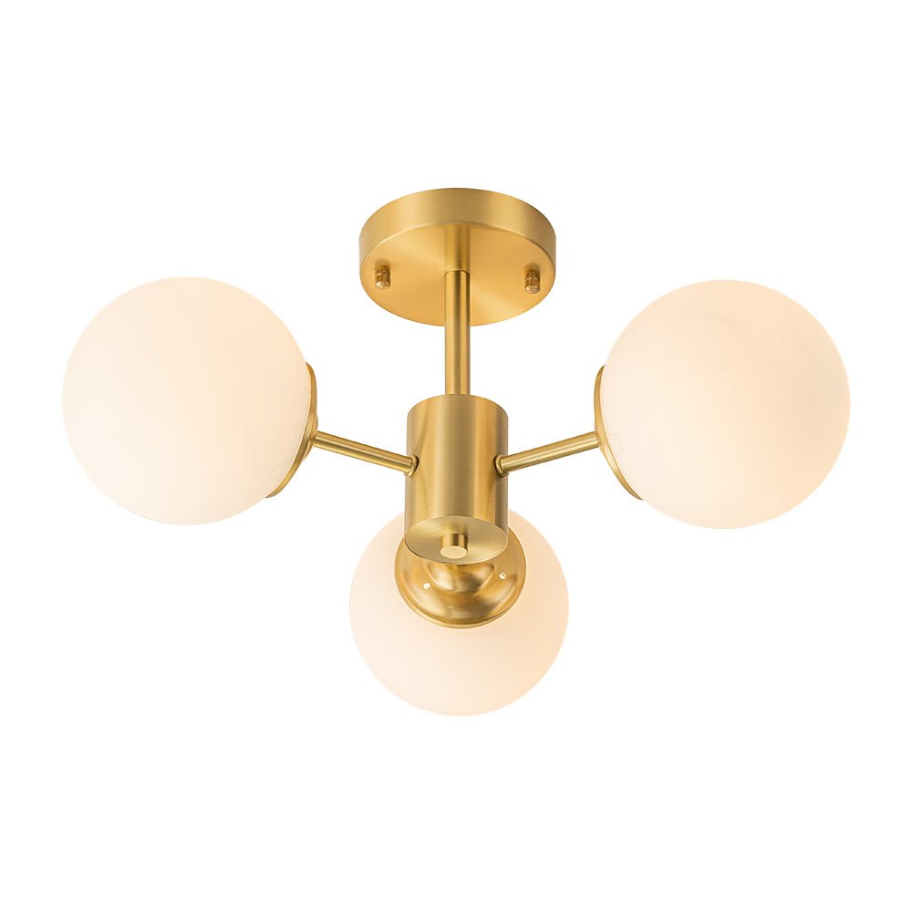 Messinkinen 3-kevyt opaalilasipallo, puolitasoinen asennus
