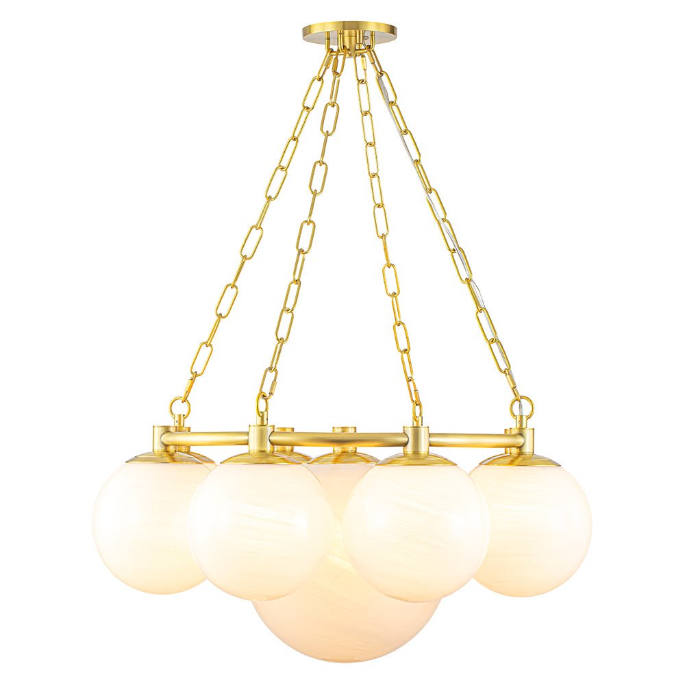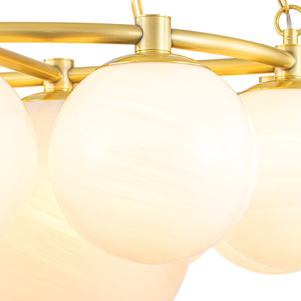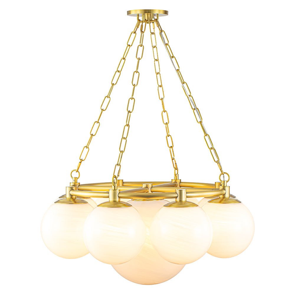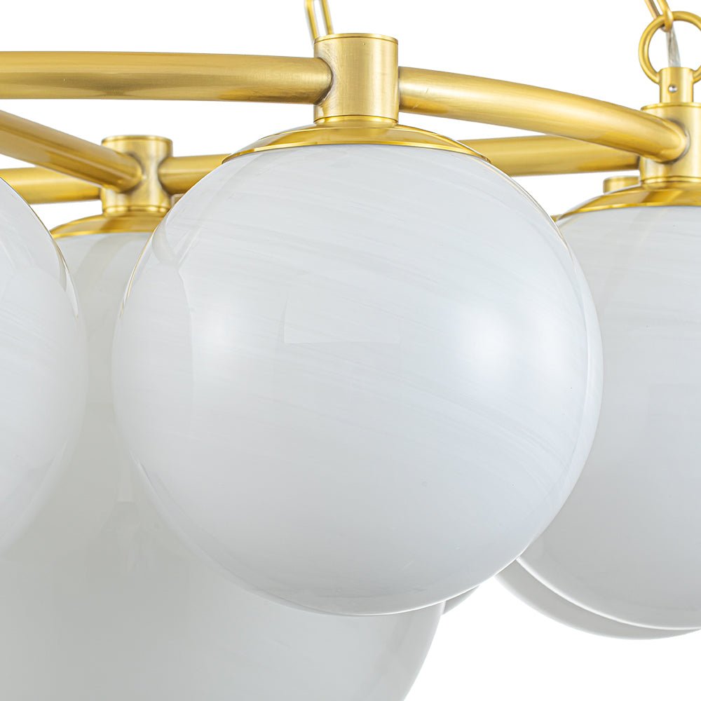 Yhdeksän valoa • Pyörän runko • Maitomainen kupla • Alabasterilasi • Messinkiviimeistely • E26-pohjaiset polttimot (ei sisälly) • Kiinteä • UL-listattu